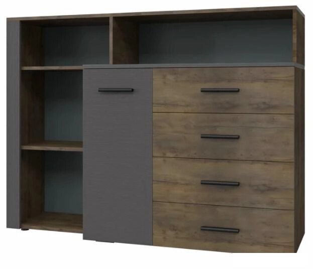 Комод Bravo Мебель Куба 1дв 4ящ с приставкой (таксус-вольфрам)