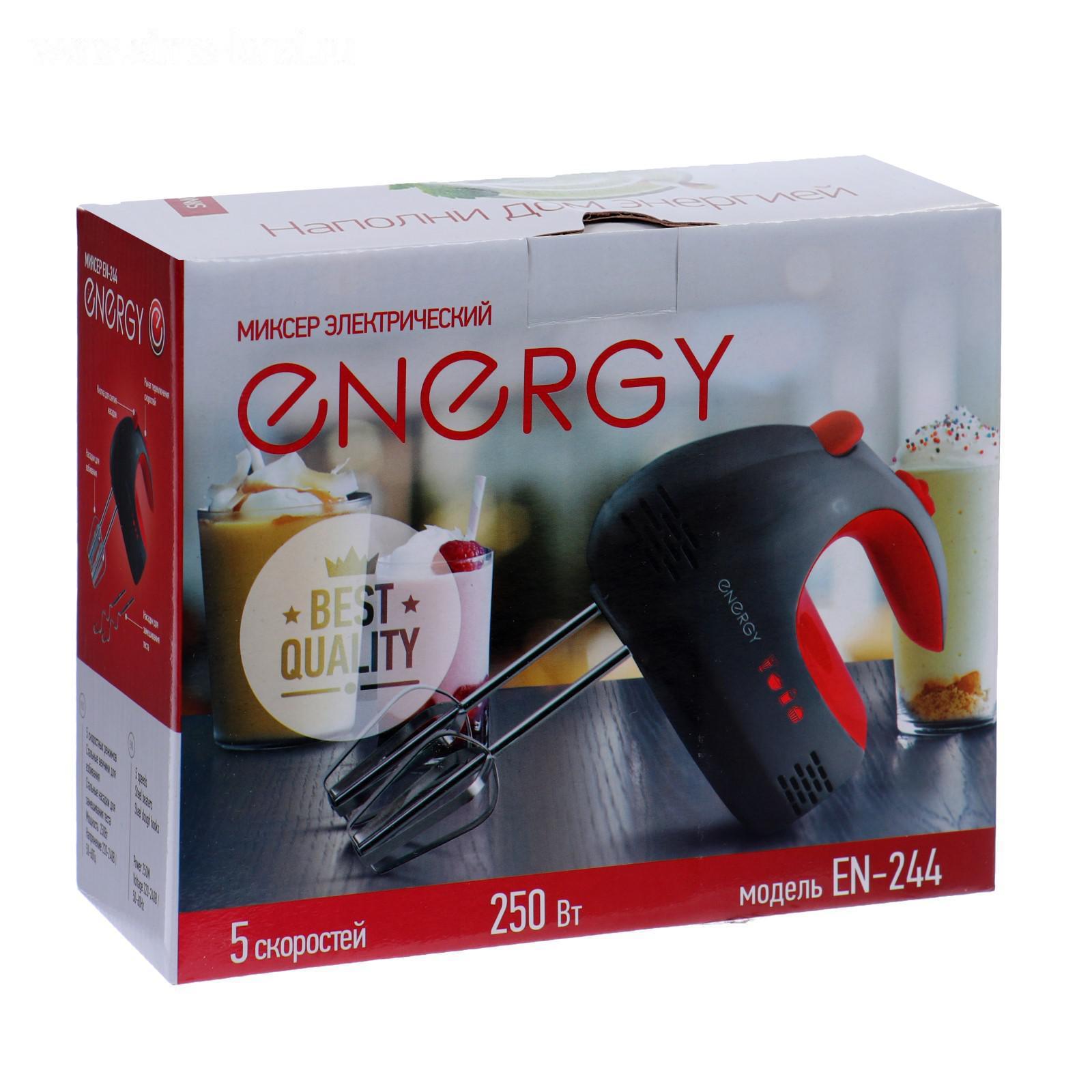 Миксер ENERGY EN-244, ручной, 250 Вт, 5 скоростей, 2 насадки, чёрно-красный