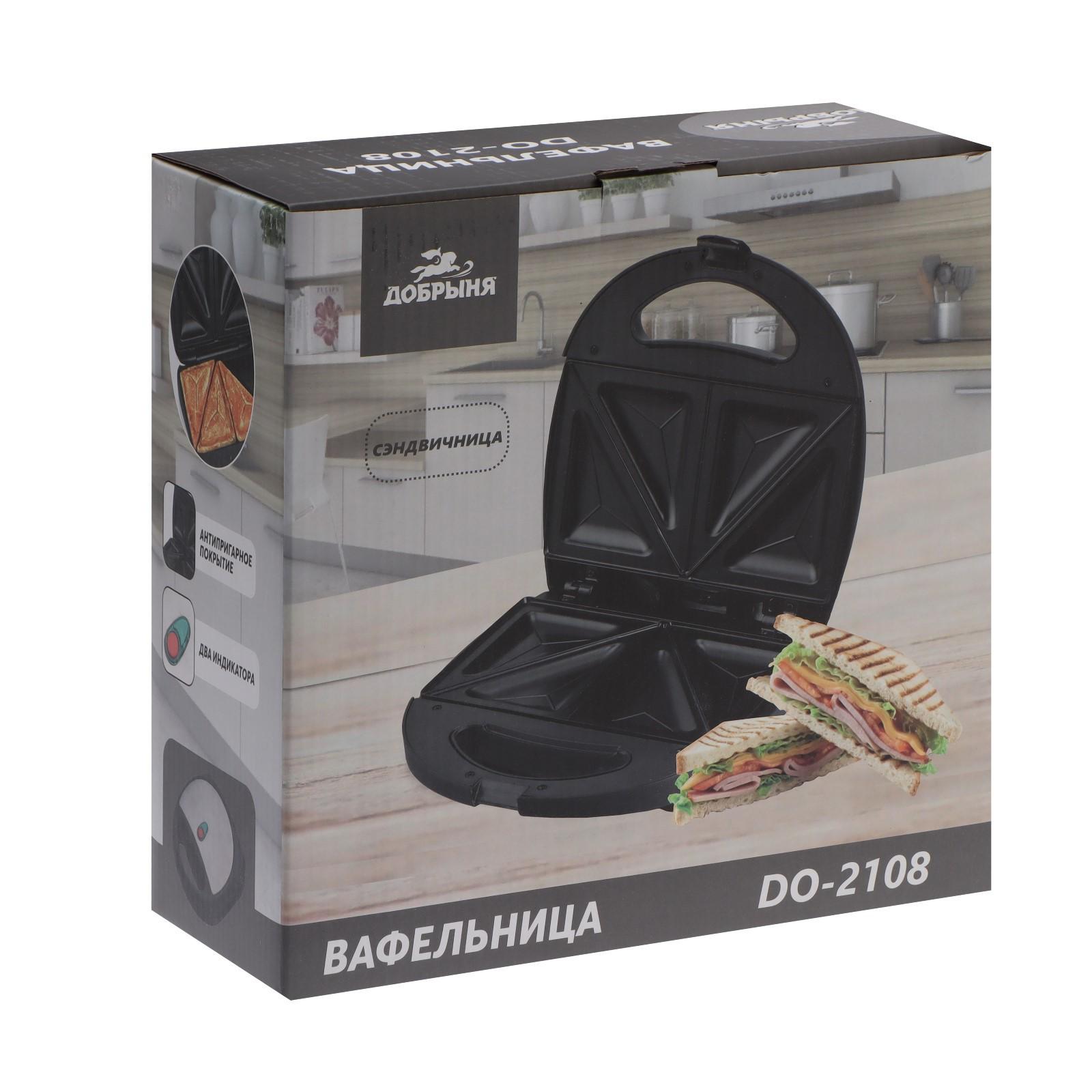 Сэндвичница-вафельница "Добрыня" DO-2108, 850 Вт, антипригарное покрытие, чёрная