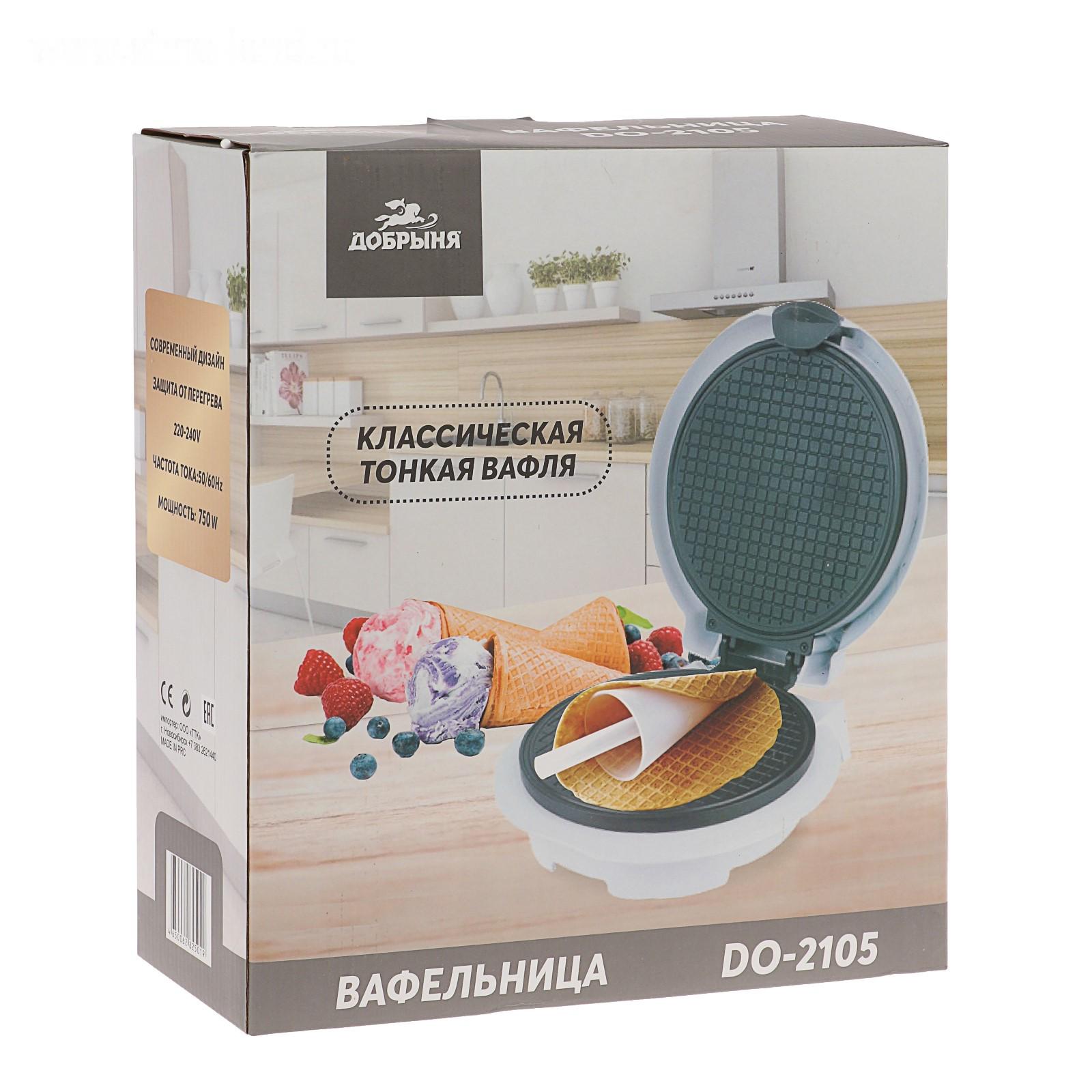 Электровафельница "Добрыня" DO-2105, 1200 Вт, тонкие вафли, антипригарное покрытие, белая