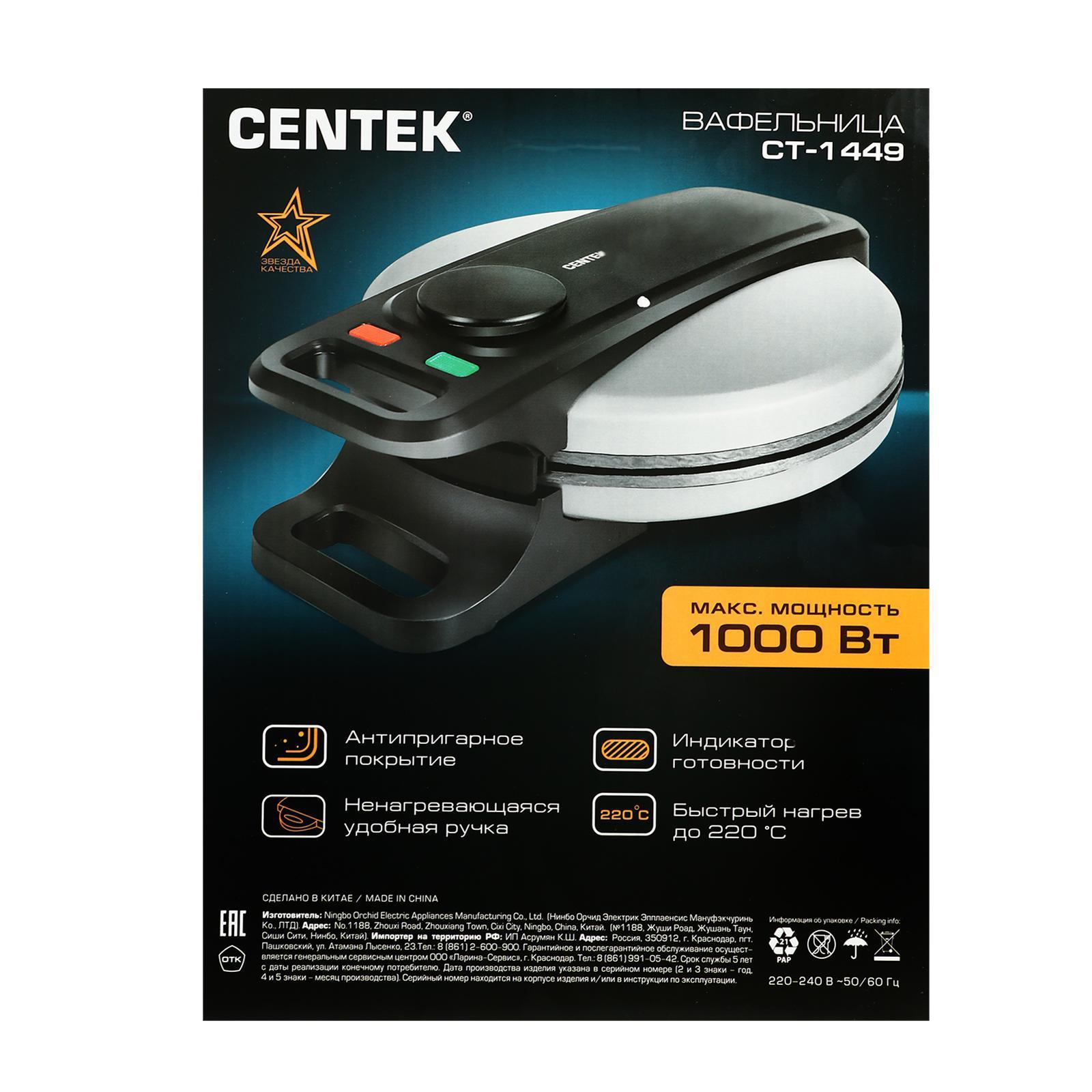 Электровафельница Centek CT-1449, 1000Вт, венские вафли, а/пригарное покрытие, серебр/черная