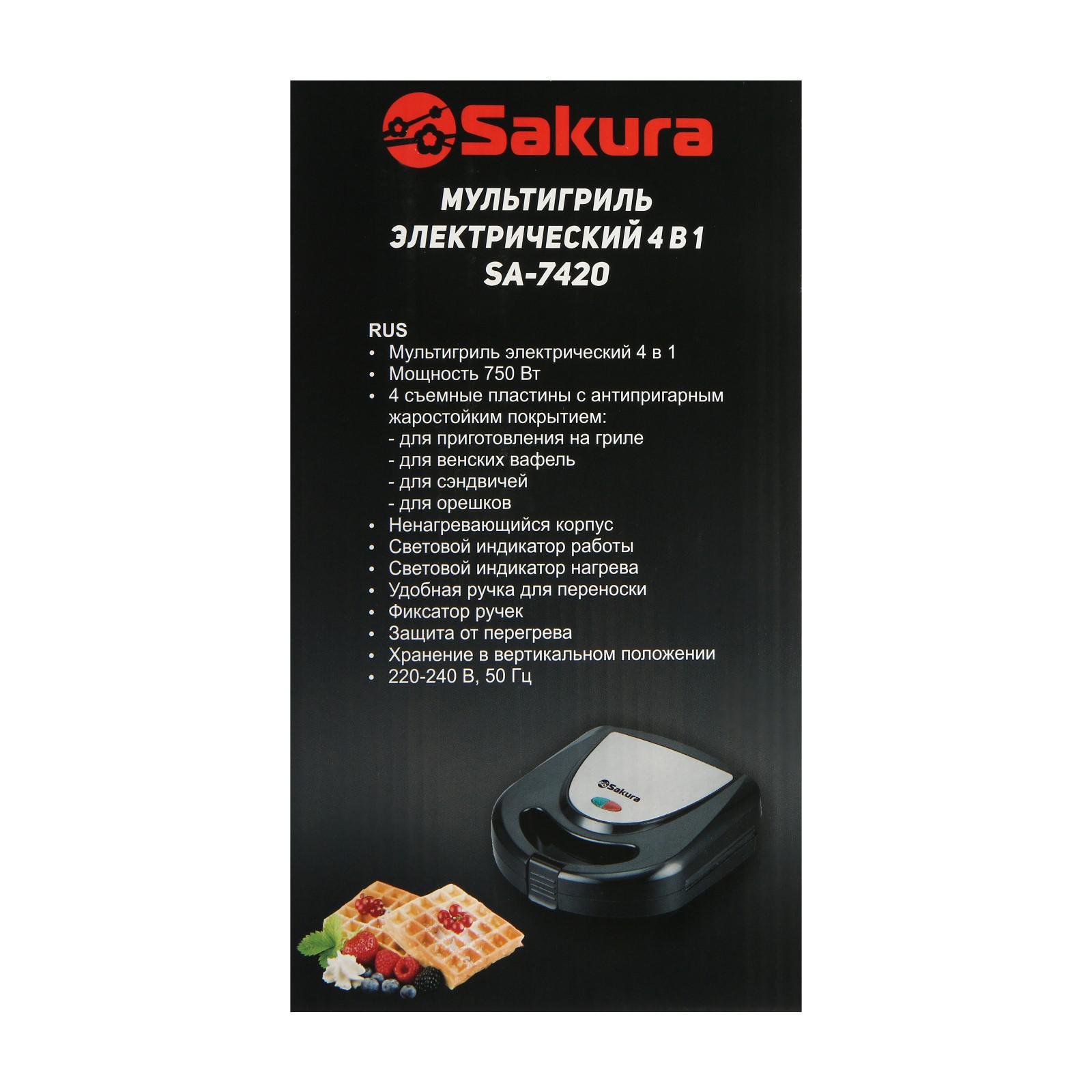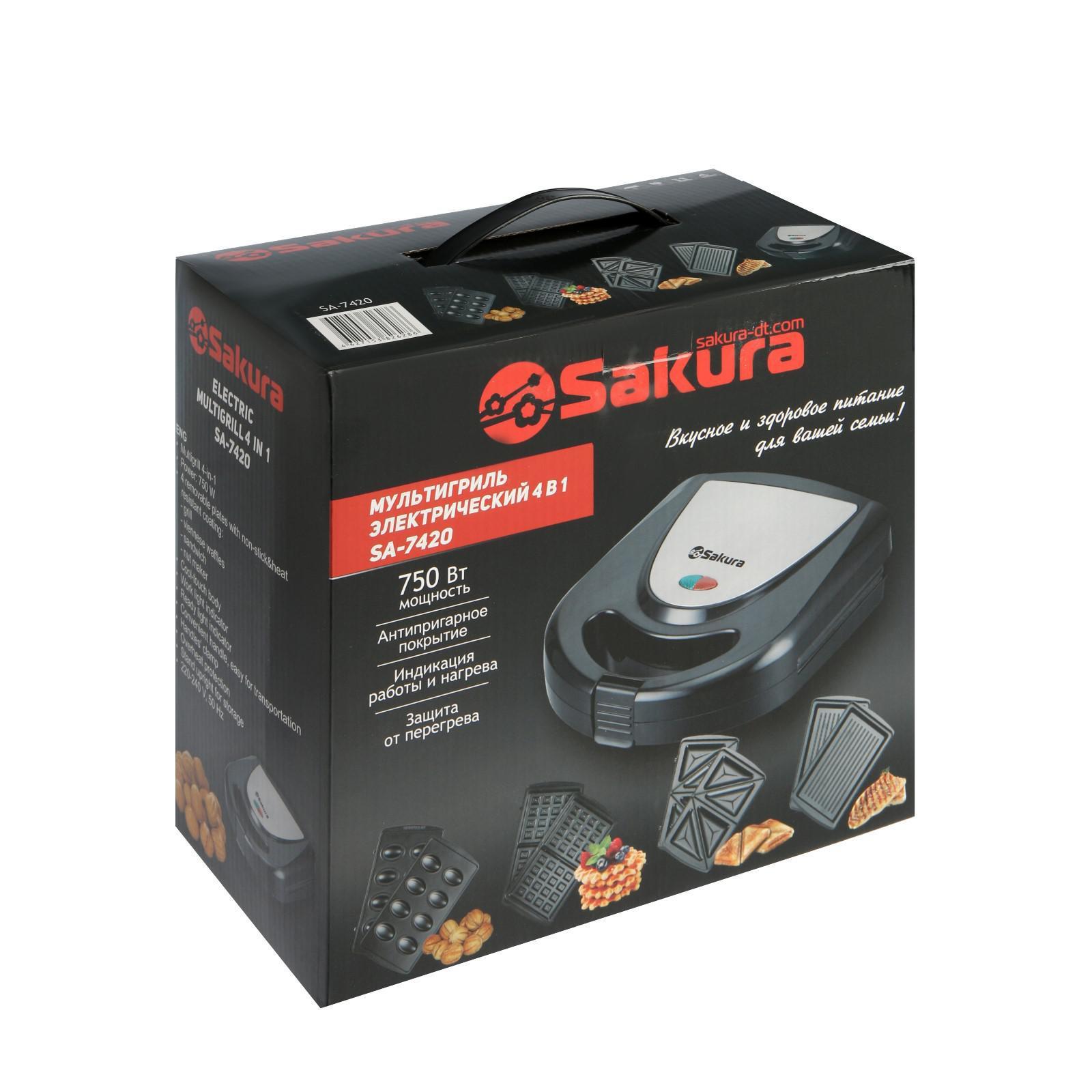 Мультипекарь Sakura SA-7420, 750 Вт, антипригарное покрытие, орешки, чёрный