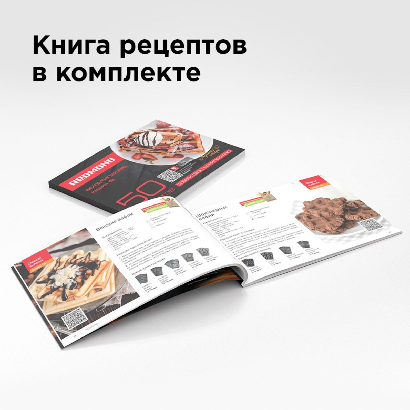 Мультипекарь Redmond RMB-M613/1 – универсальное многофункциональное устройство, которое заменяет вафельницу, омлетницу, гриль, пончик-мейкер, кексницу, бутербродницу и множество других приборов для выпечки или жарки. Достаточно поменять пресс-панель и вы получите новое устройство для приготовления блюд. Размер одной формы равен 250х132х9 мм.