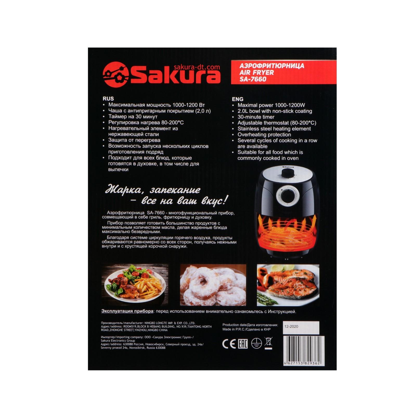 Аэрогриль Sakura SA-7660, 1200 Вт, 80-200°C, 2 л, чёрно-серый