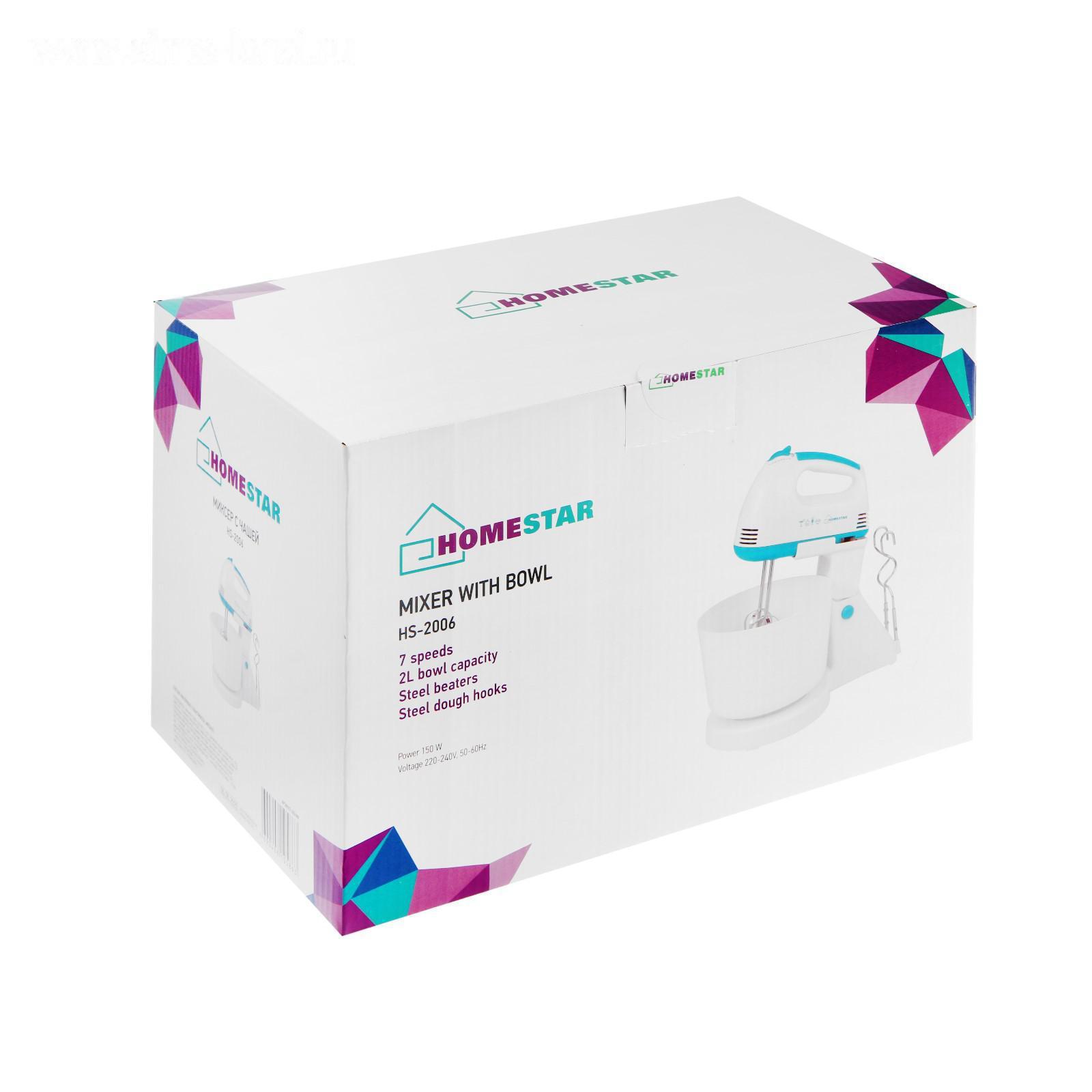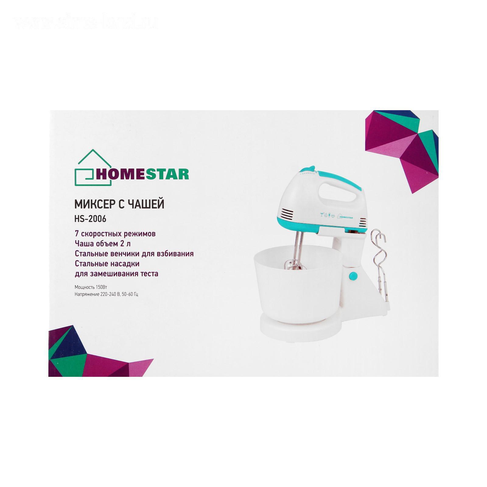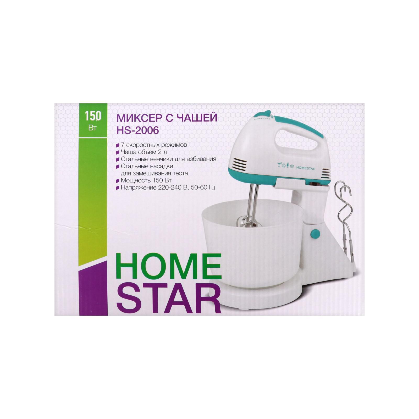 Миксер HOMESTAR HS-2006, стационарный, 150 Вт, 2 л, 7 скоростей, бело-бирюзовый