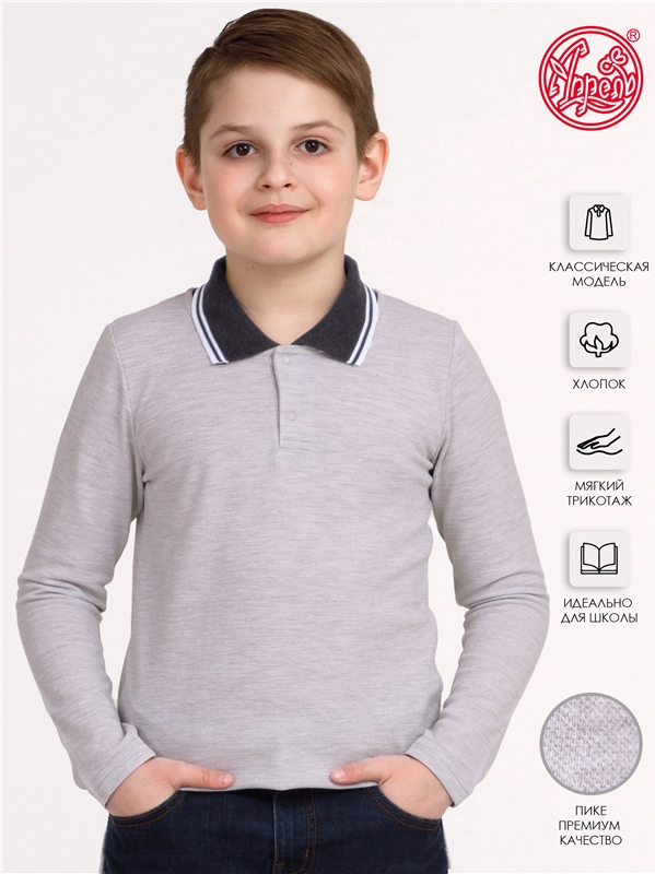 Поло детское Апрель, цв.серый+темно-синий+белый