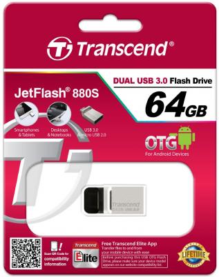 Флешка USB 64Gb Transcend JetFlash 880 TS64GJF880S серебристый