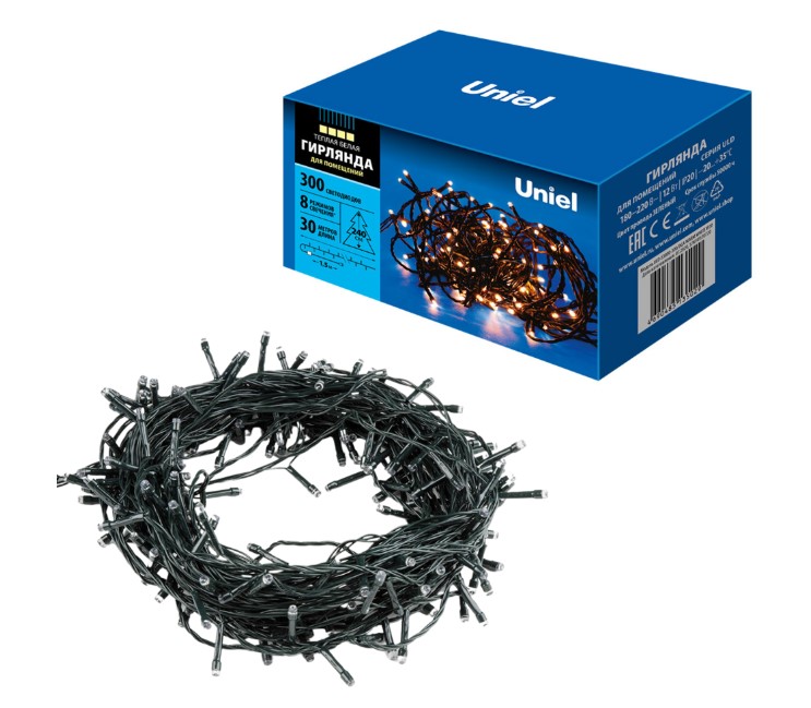 Гирлянда cветодиодная Uniel ULD-S3000-300/DGA Warm White IP20