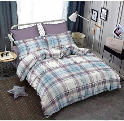 - В комплекте пододеяльник, простыня, 4 наволочки