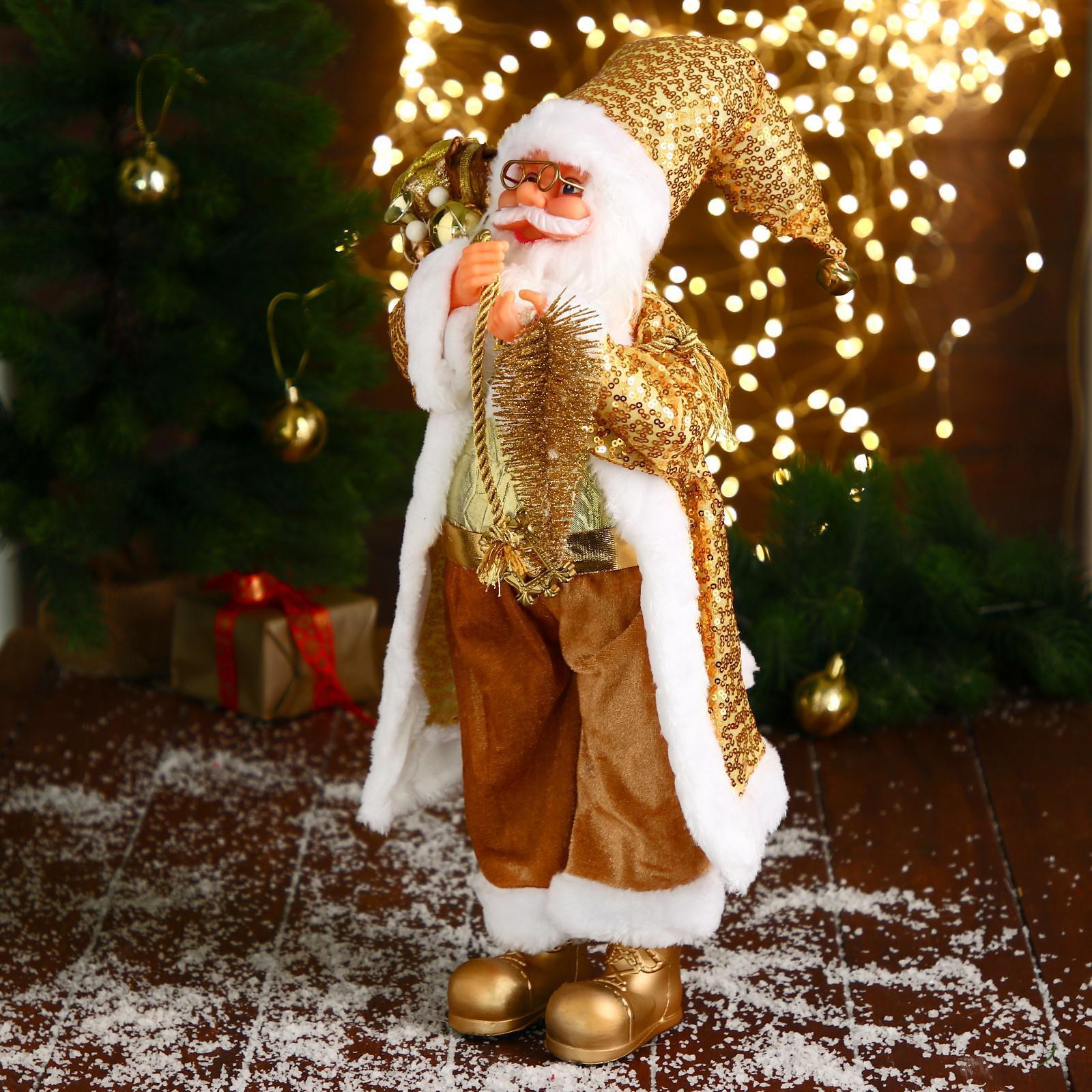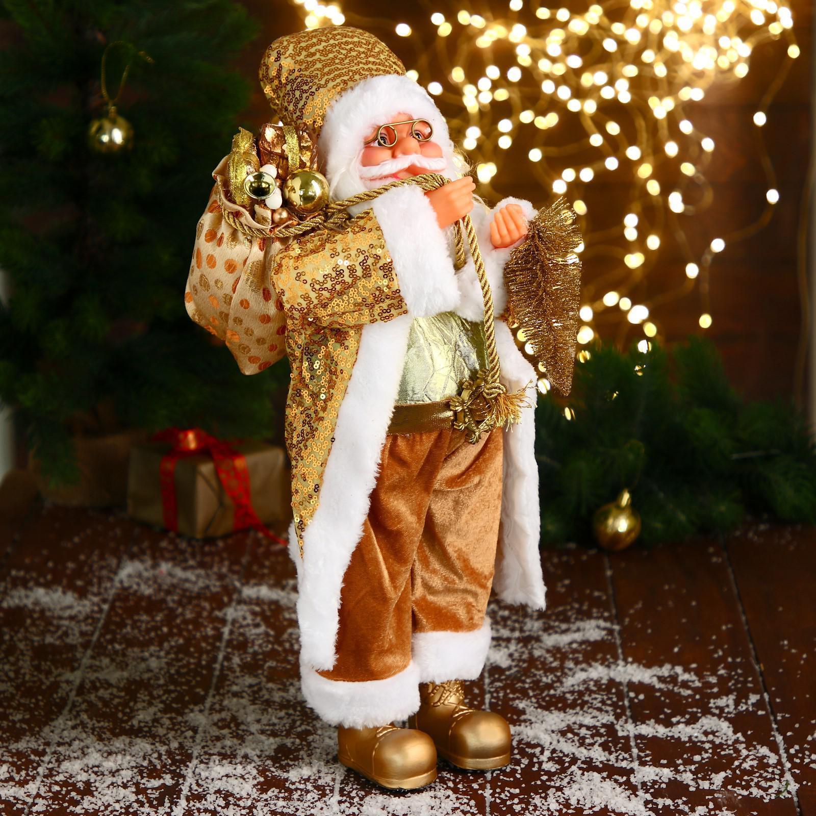 Дед Мороз "В золотом костюме, с ёлочкой и подарками" 23х45 см
