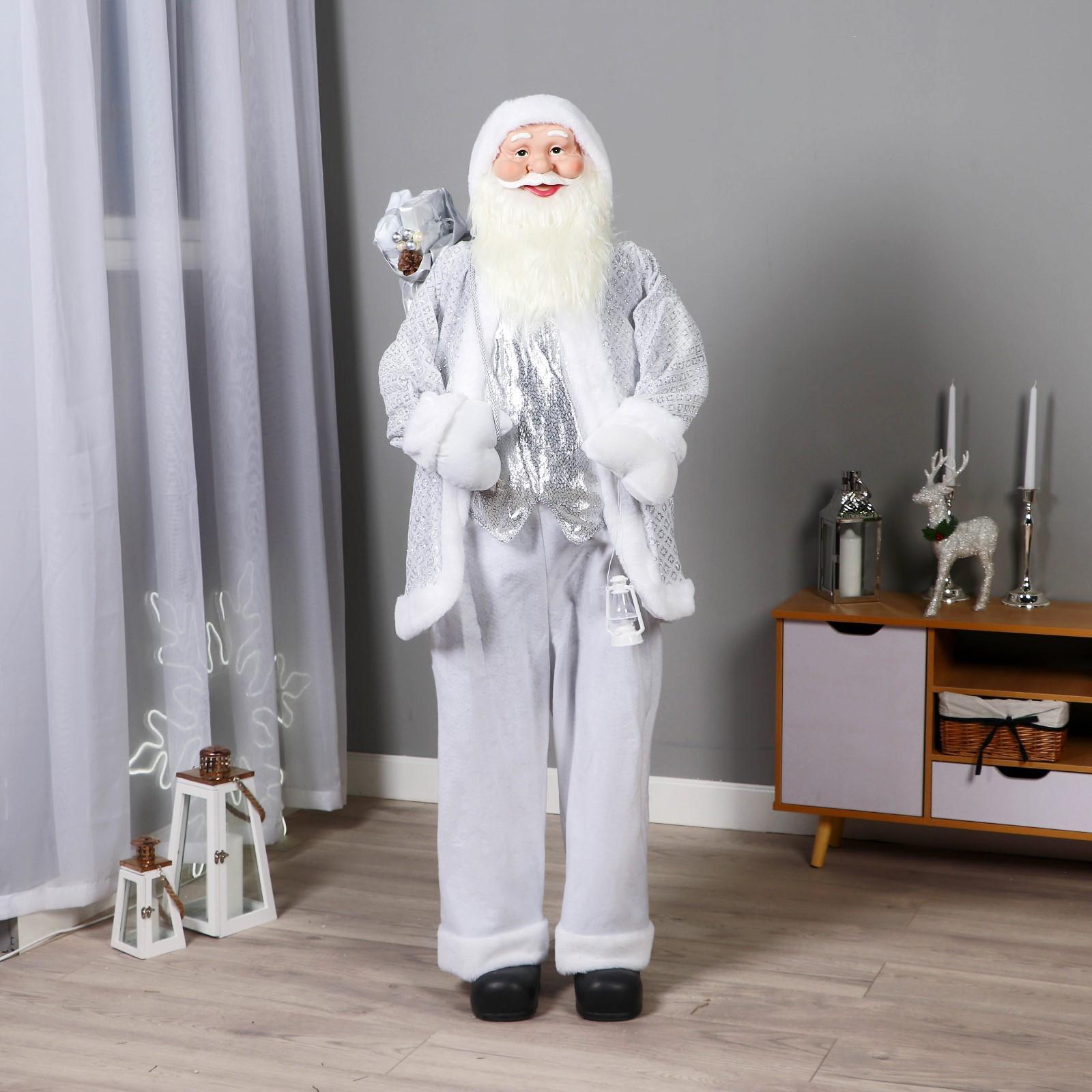 Дед Мороз "В белой шубе ромбик блеск, с фонариком и подарками" 45х150 см
