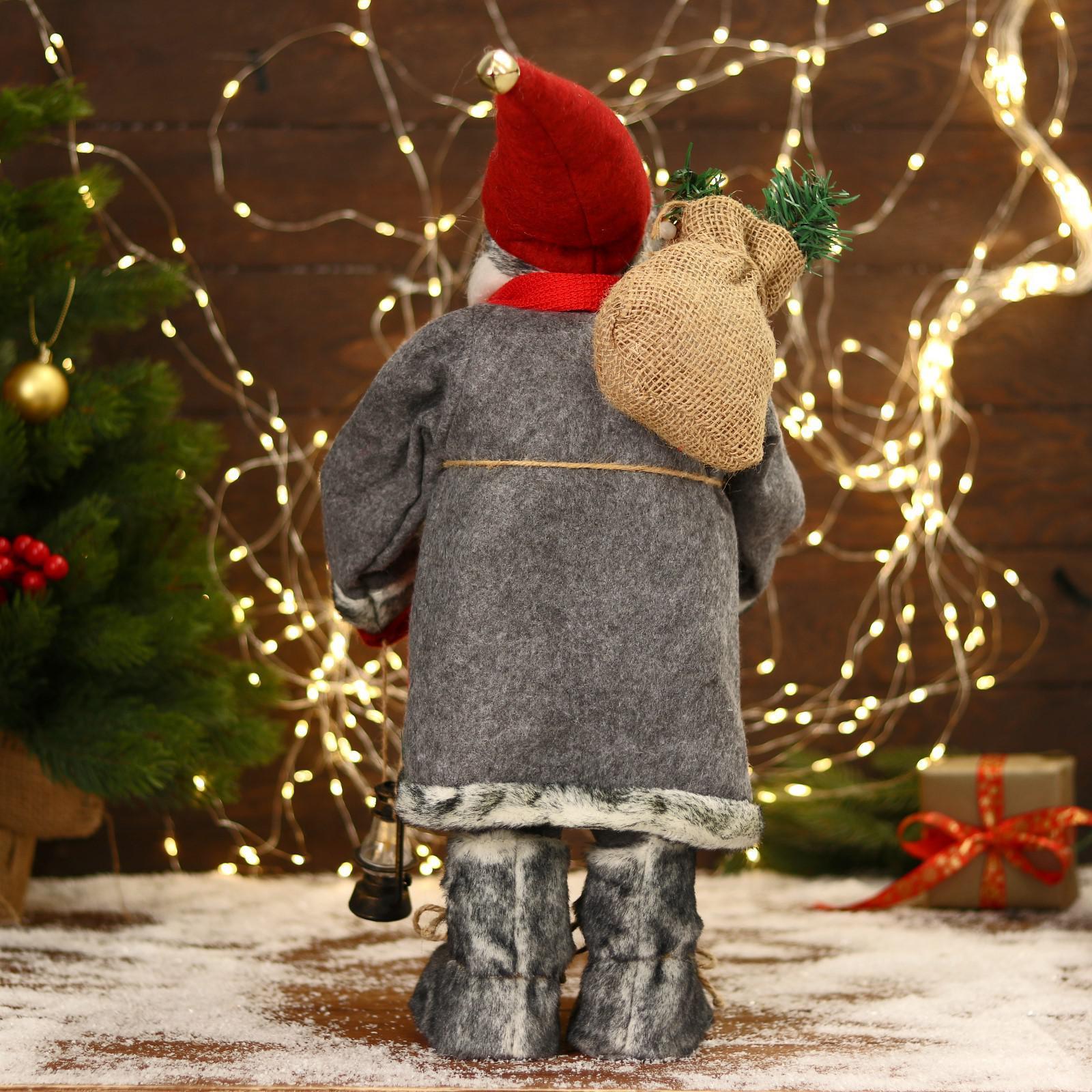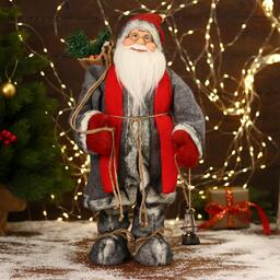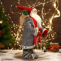 Дед Мороз "В красно-серой шубке и варежках" двигается, 17х45 см