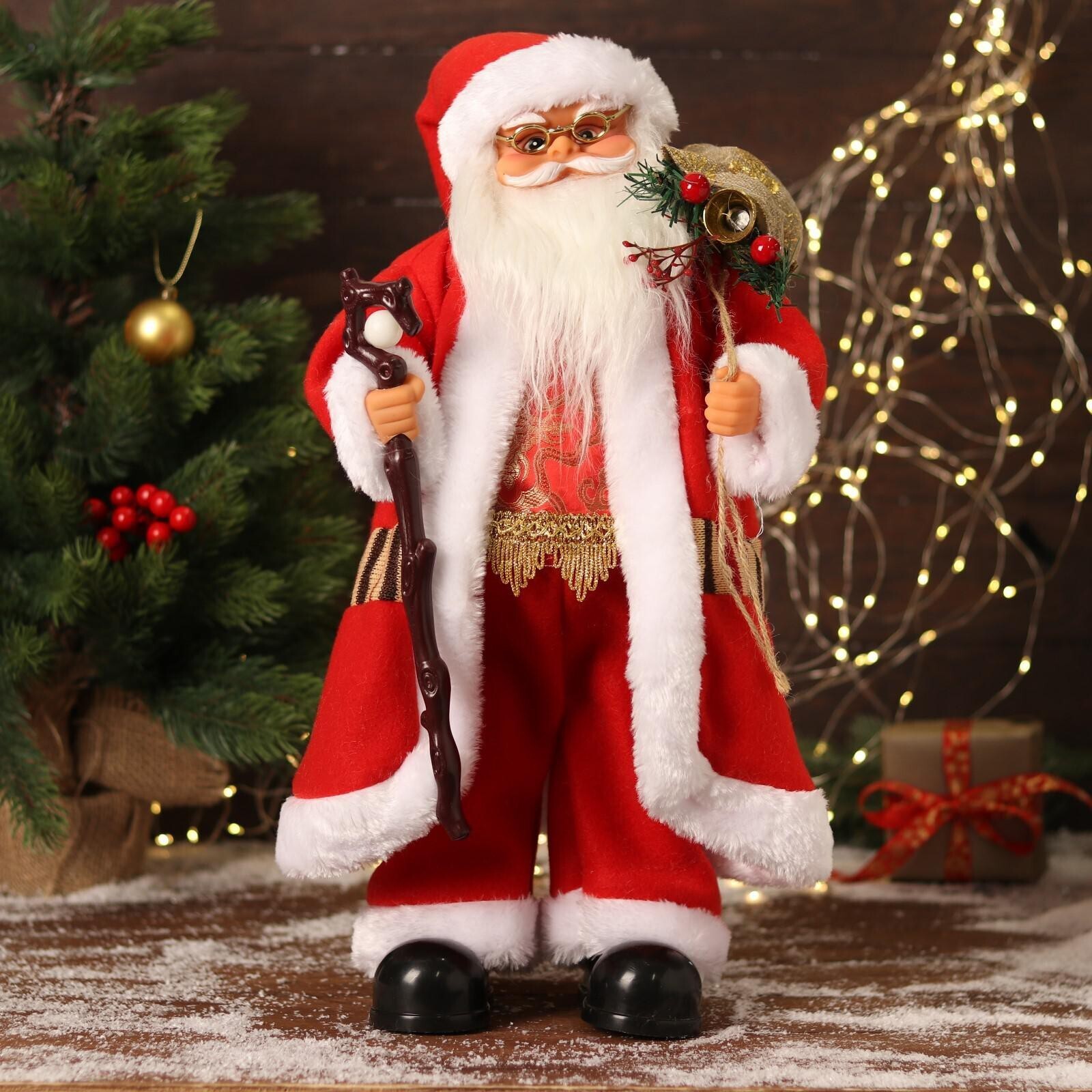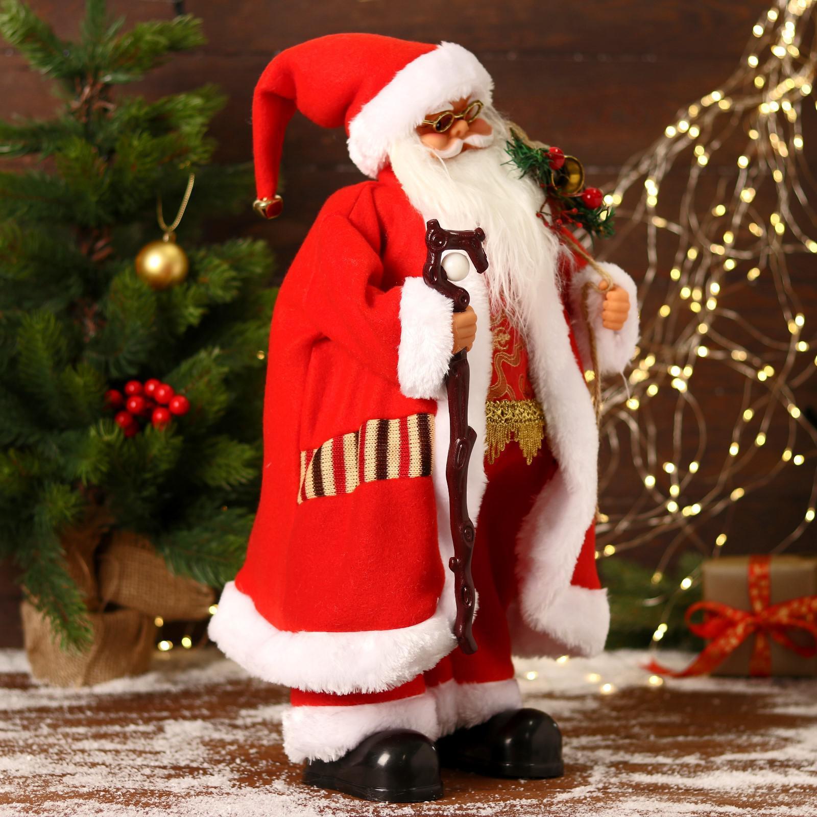 Дед Мороз "В красном костюмчике с орнаментом, с посохом" двигается, 20х50 см