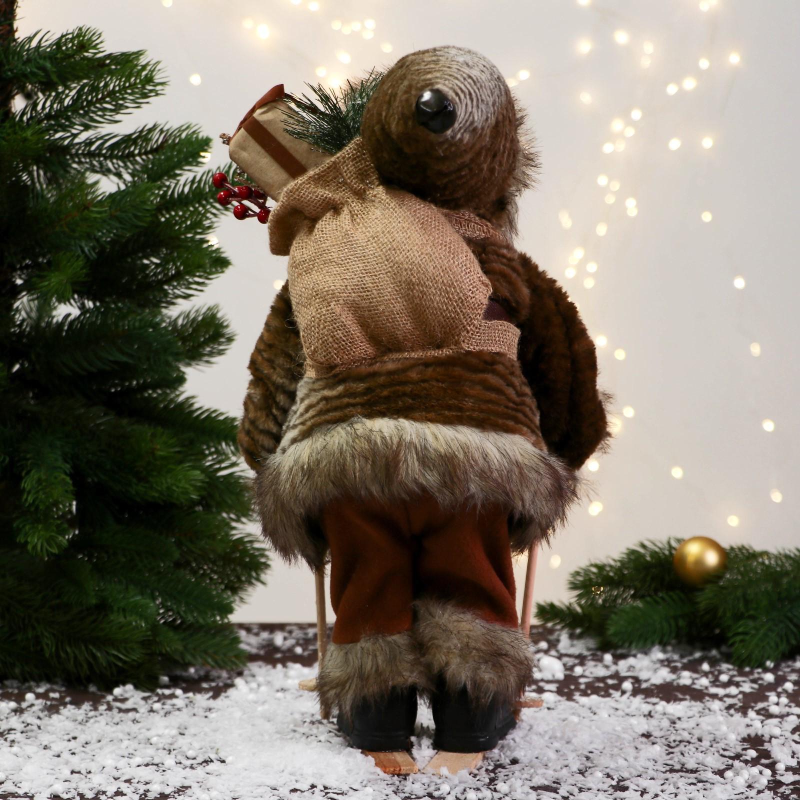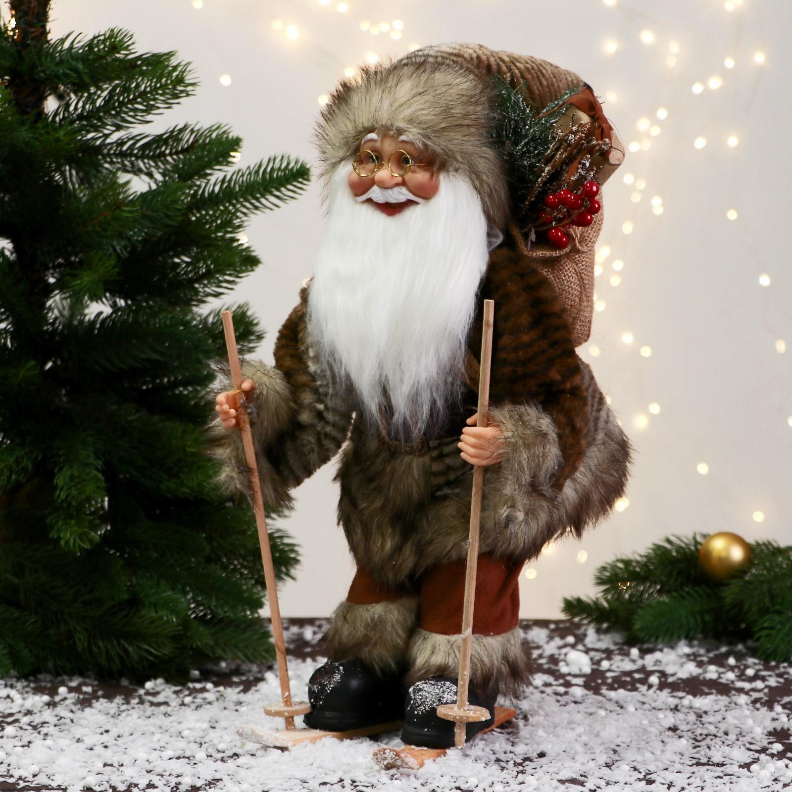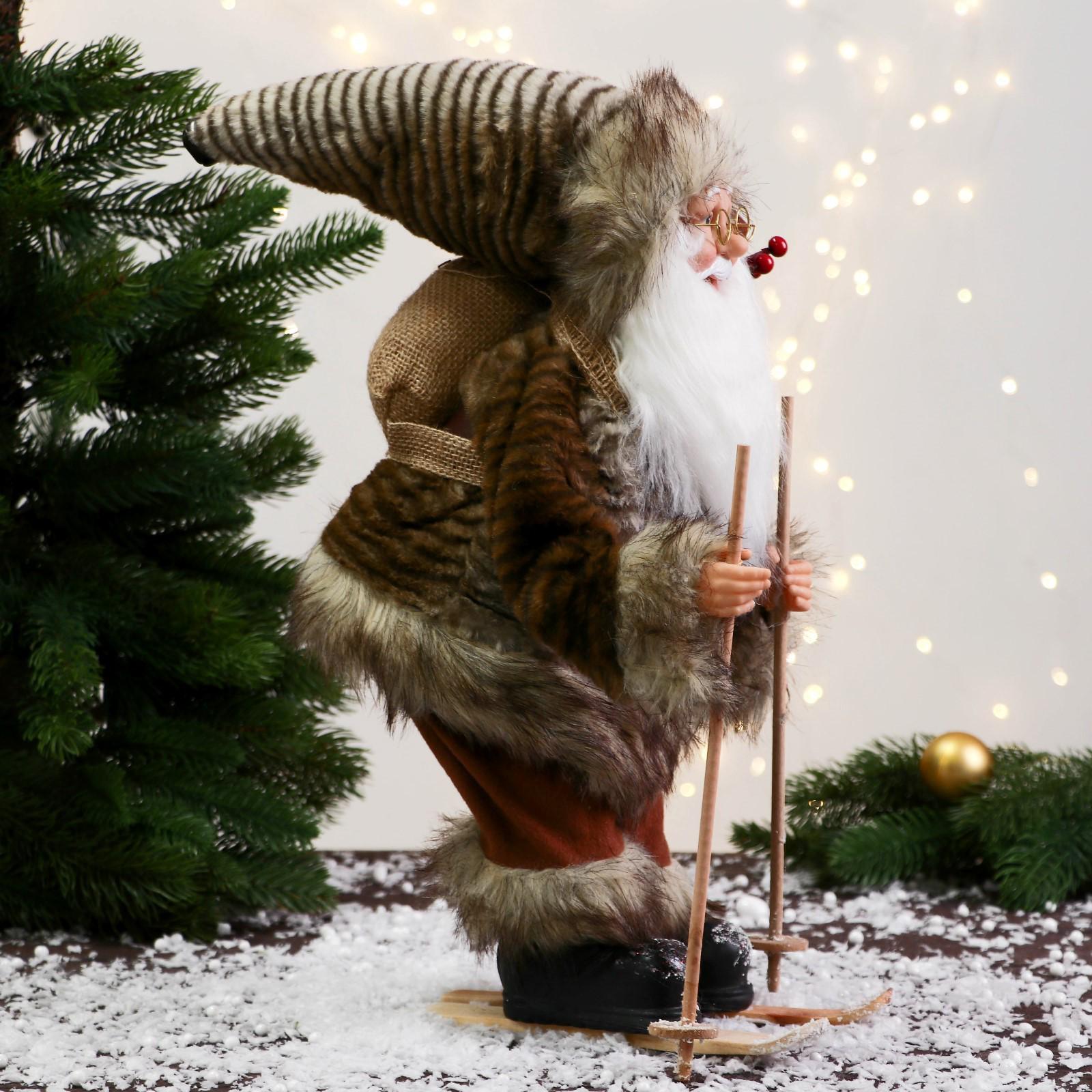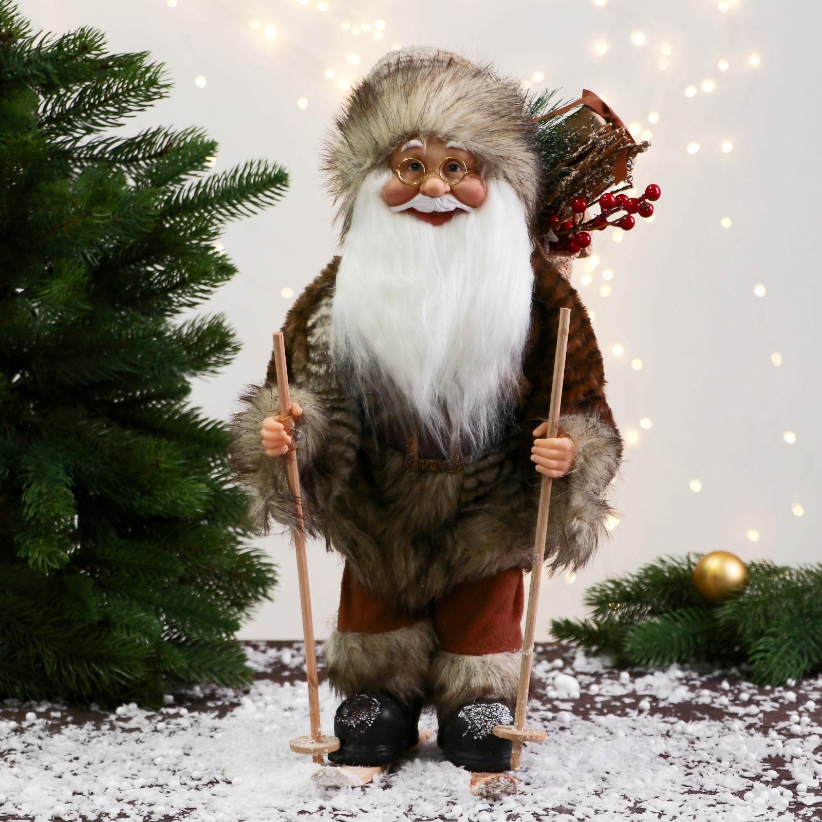 Дед Мороз "На лыжах и с веточками" 40 см, серый