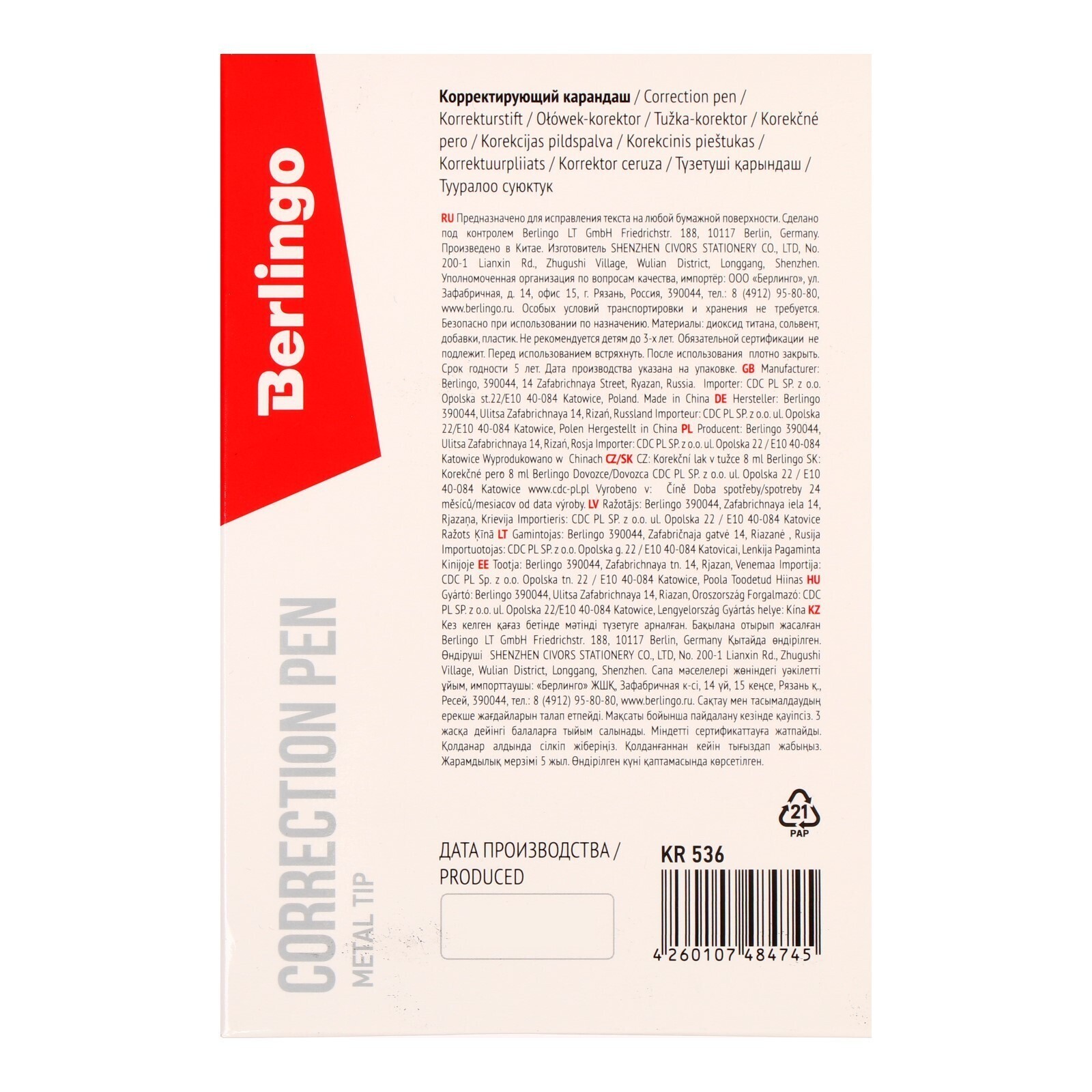 Корректирующий карандаш 8мл Berlingo, металлический наконечник
