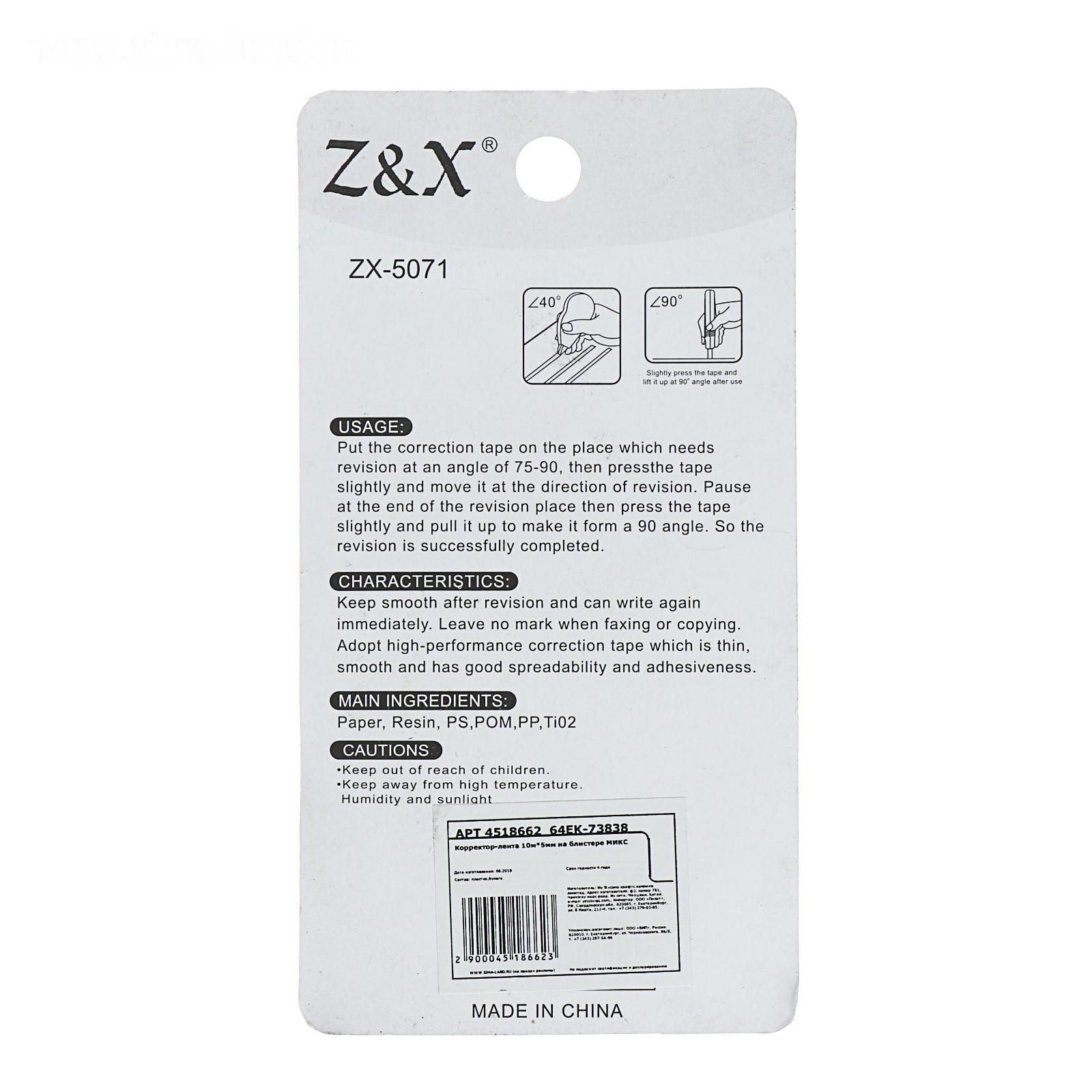 Корректор-лента 10 м х 5 мм, блистер, европодвес, корпус МИКС