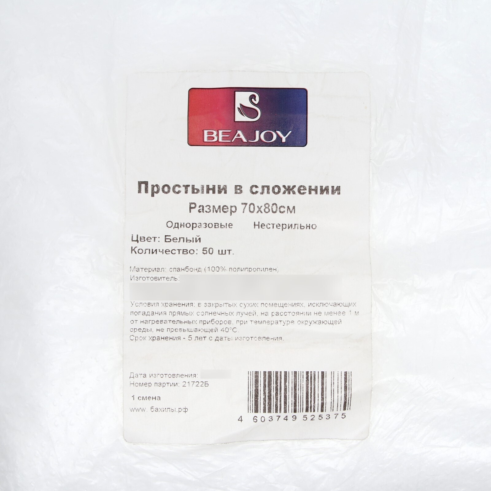 Простыни спанбонд в сложении Beajoy 70*80 см белые, 50 шт. 10 г/м2