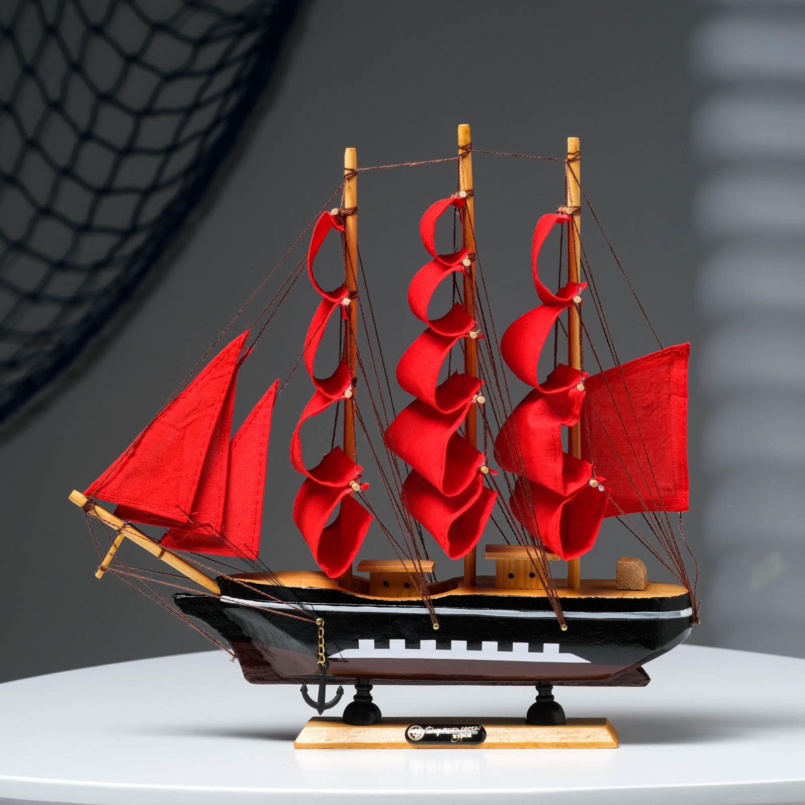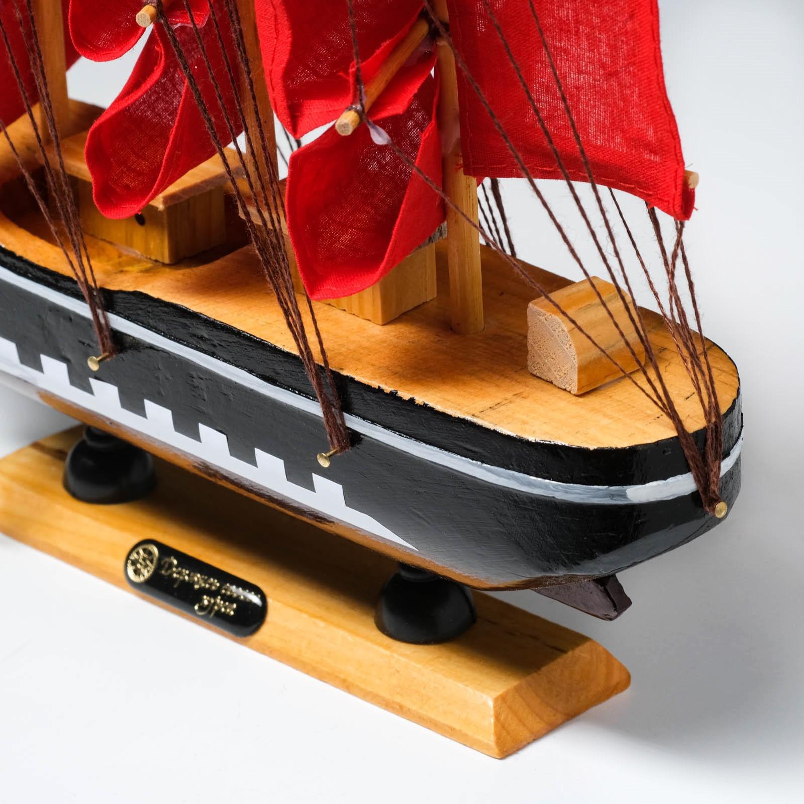 Корабль сувенирный средний «Флора», борта чёрные с белой полосой, паруса алые, 32х6,5х31 см принесет удачу своему обладателю