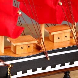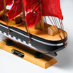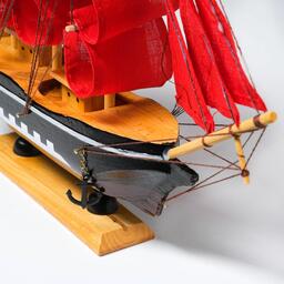 Корабль сувенирный средний «Флора», борта чёрные с белой полосой, паруса алые, 32х6,5х31 см