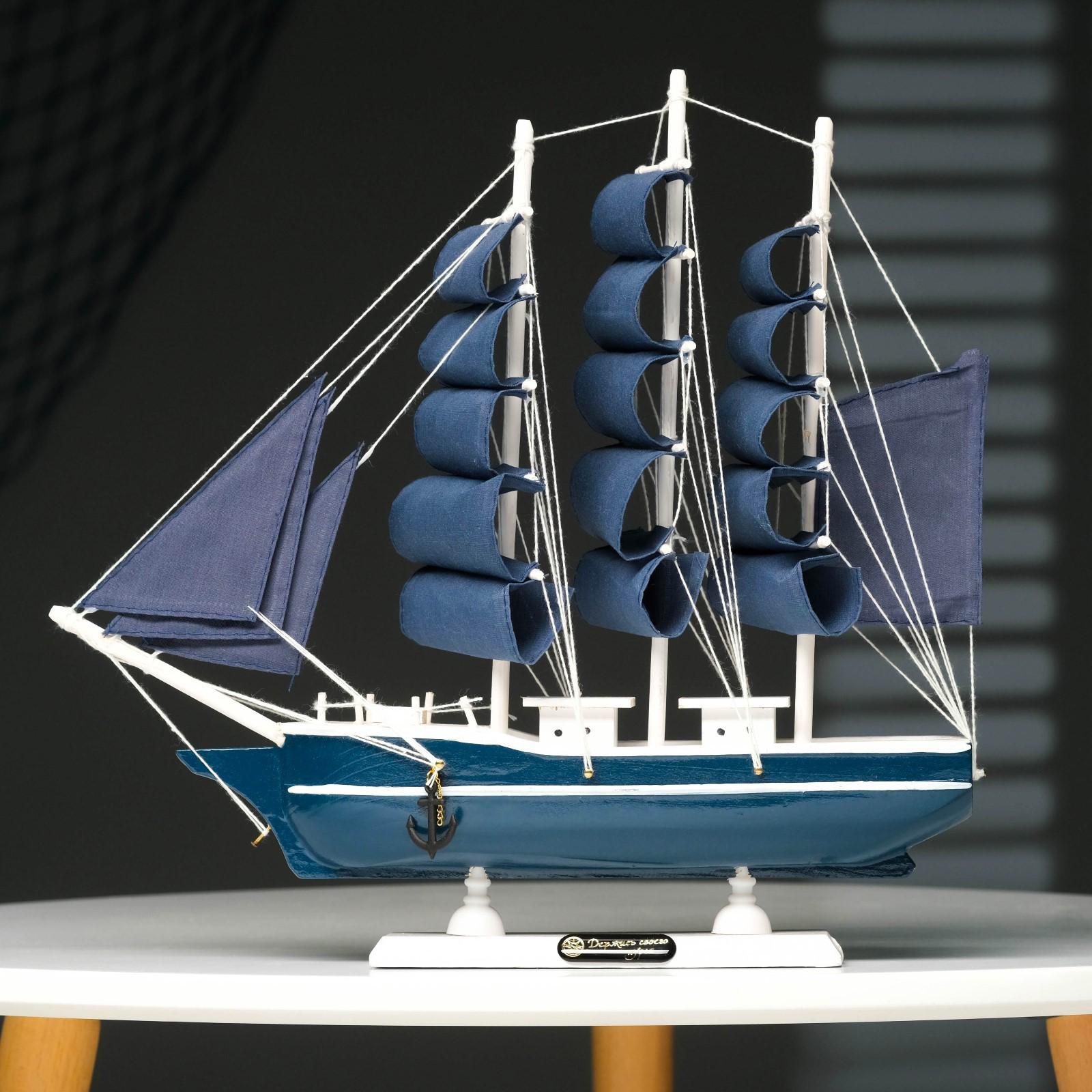 Корабль сувенирный средний «Калева», борта синие с белой полосой, паруса синие, 30х7х32 см