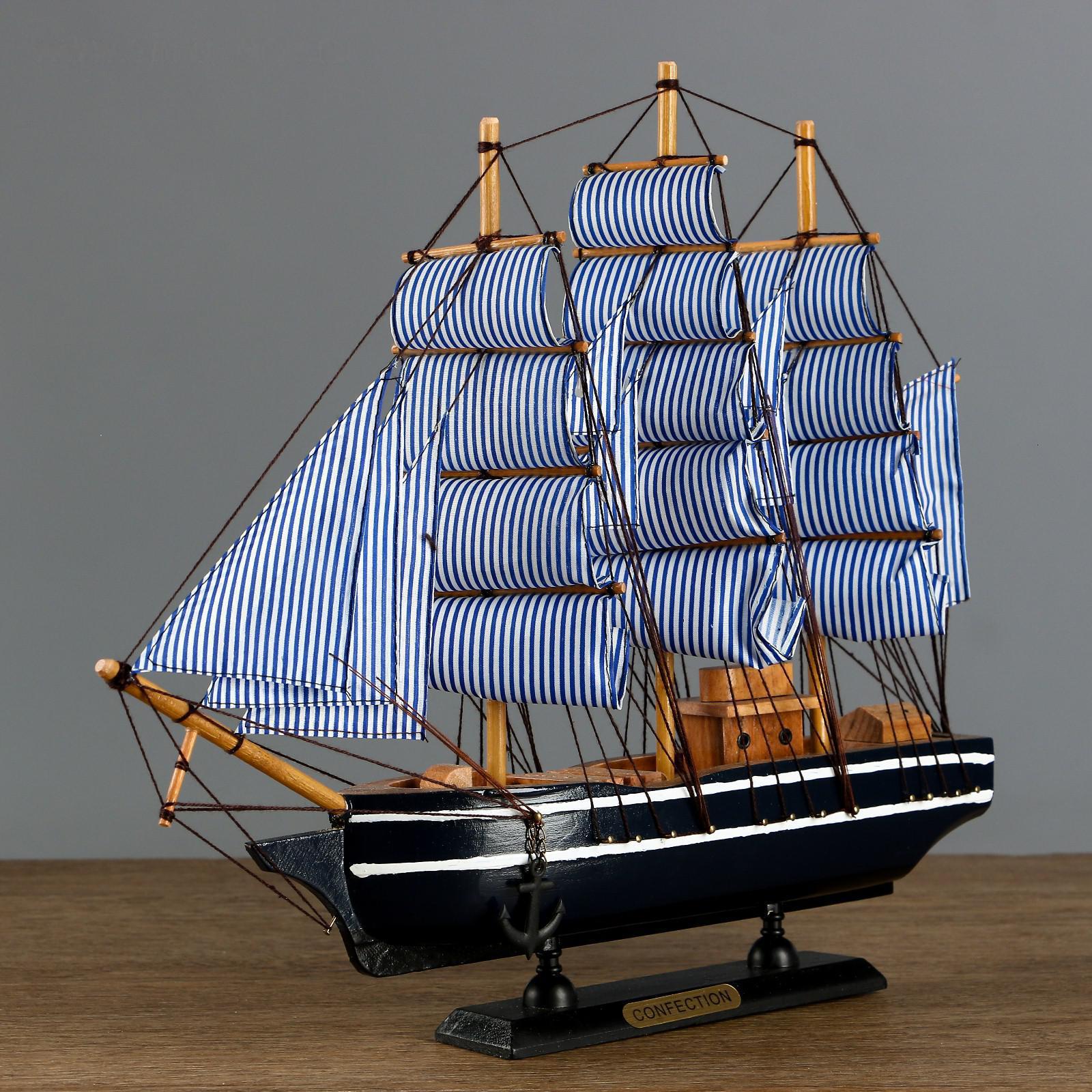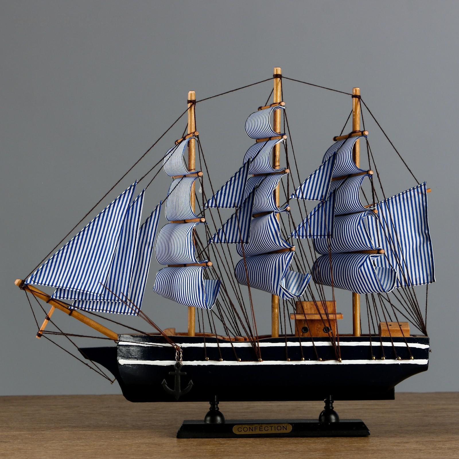 Корабль "Паллада" трехмачтовый сине-белые папруса, 40*8*35см