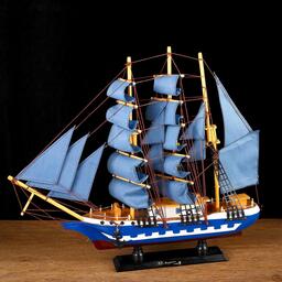 Корабль сувенирный средний «Всадник», паруса синие, микс, 43х8,5х39 см