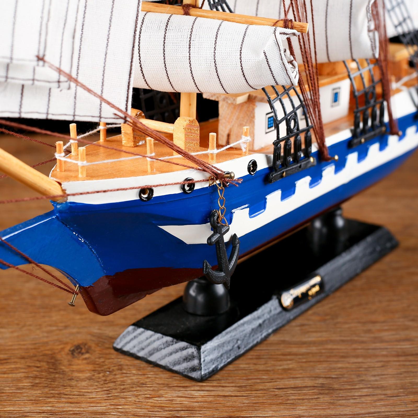 Корабль сувенирный средний «Корсика», борта синие с белой полосой, паруса белые, 43х8,5х37 см