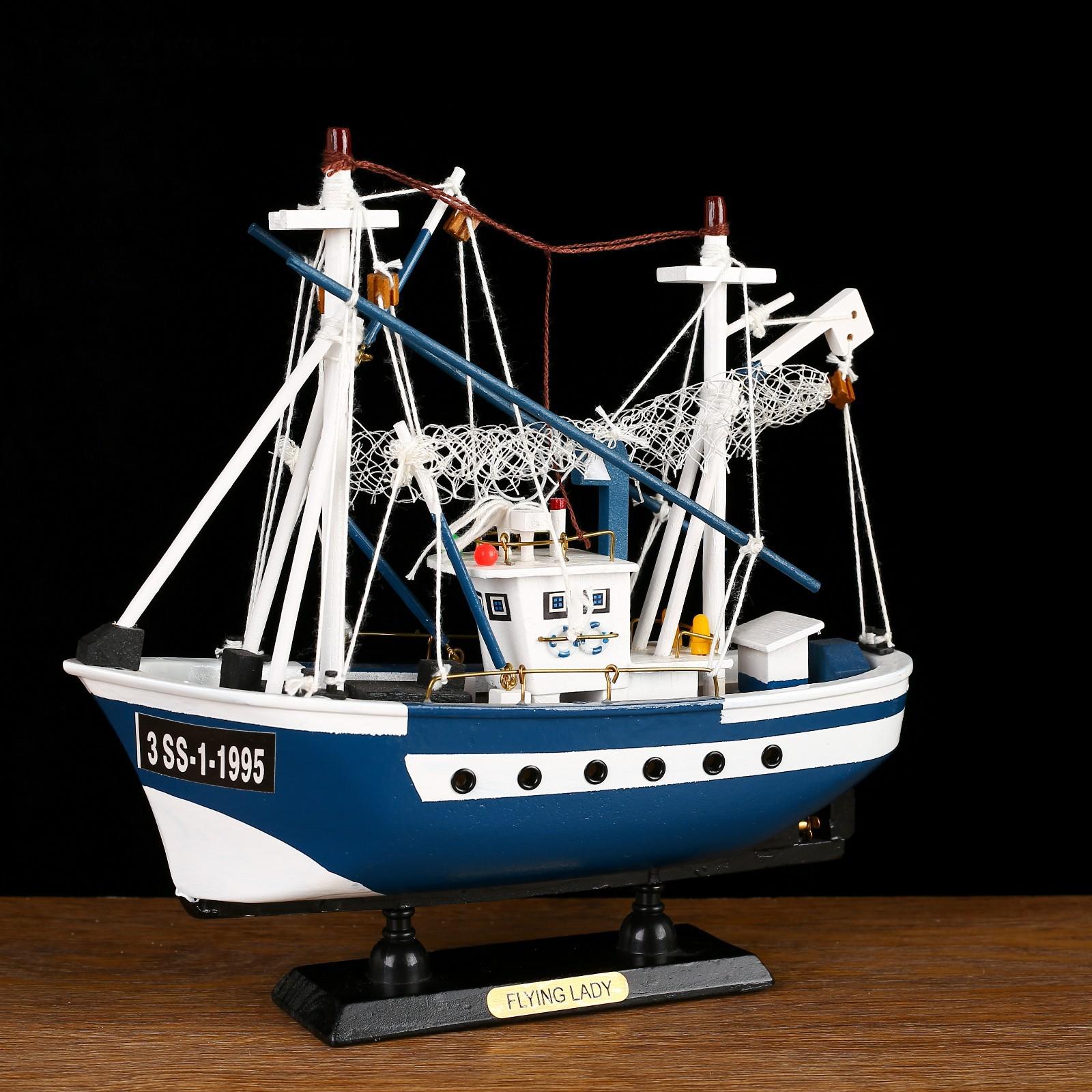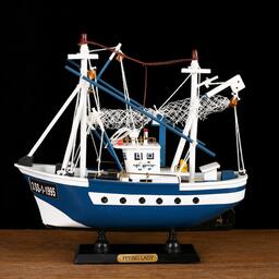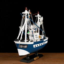 Корабль сувенирный «Ида», малый, голубые борта, сетка