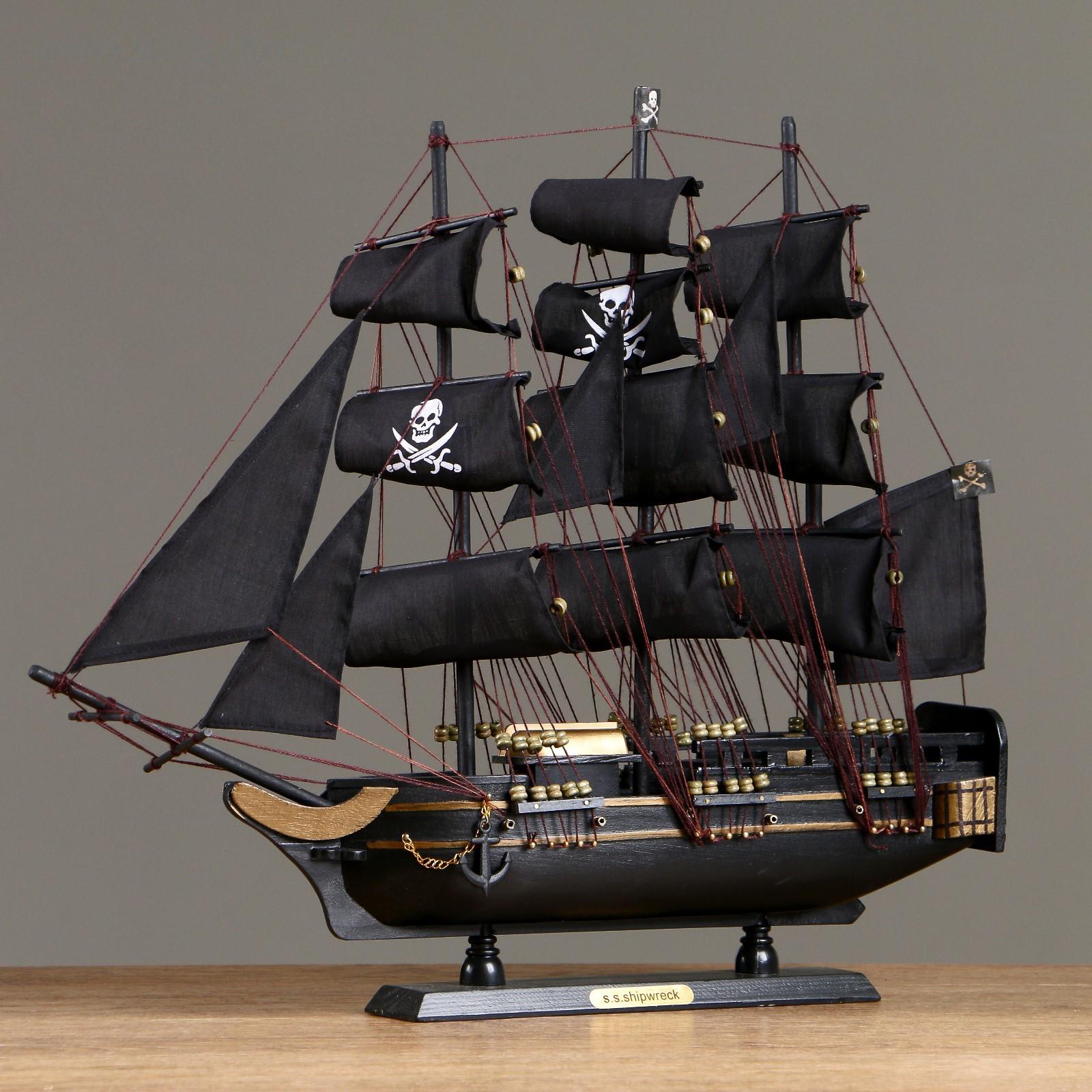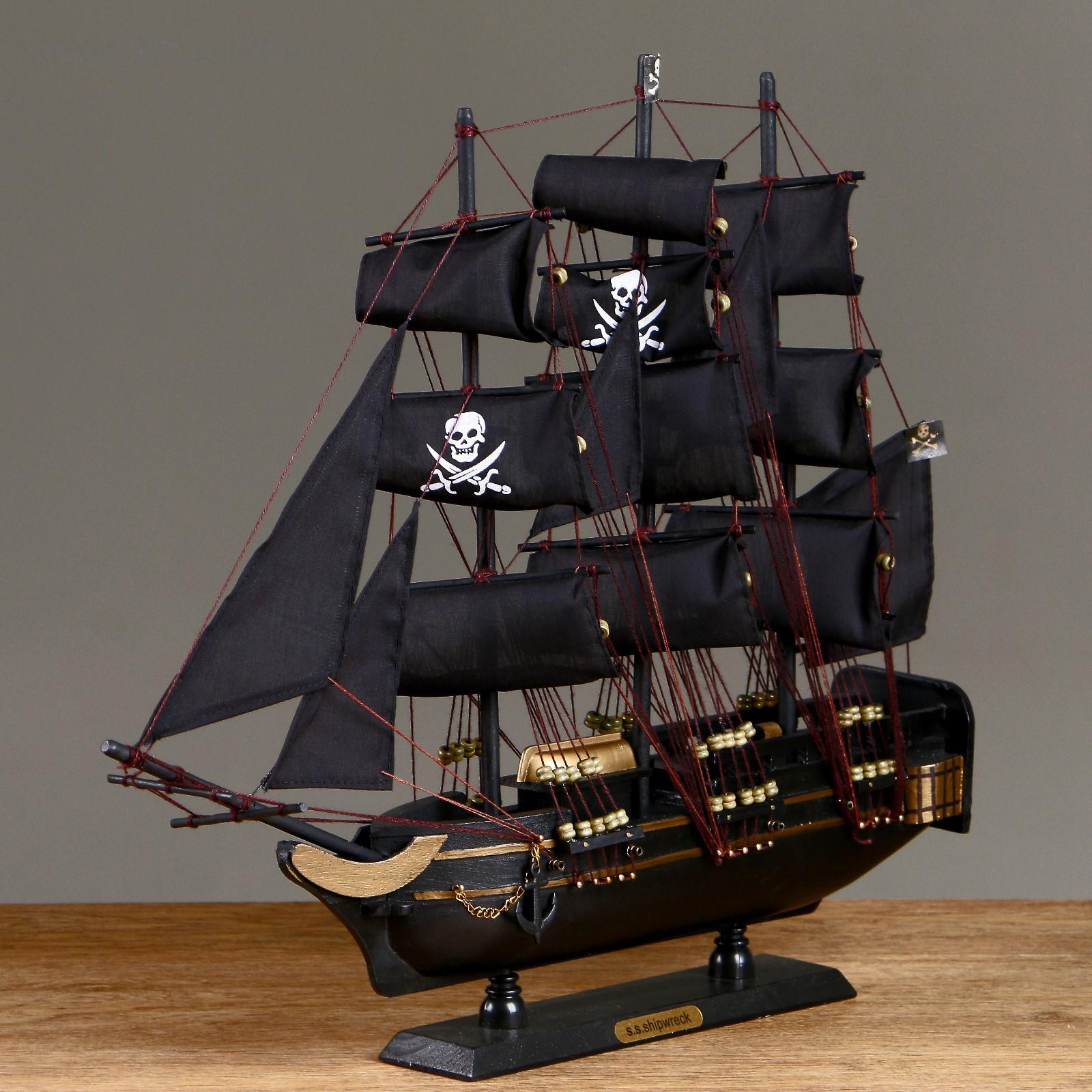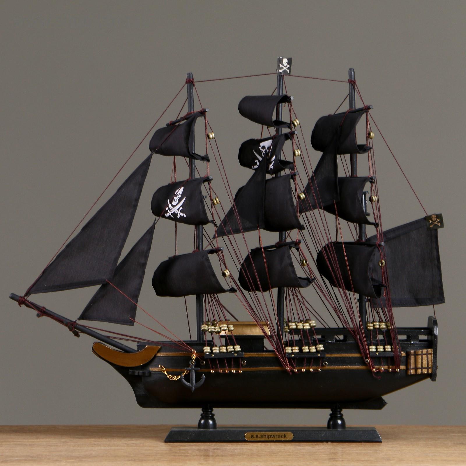 Корабль «Золотая лань», черные паруса, 50х9х45 см