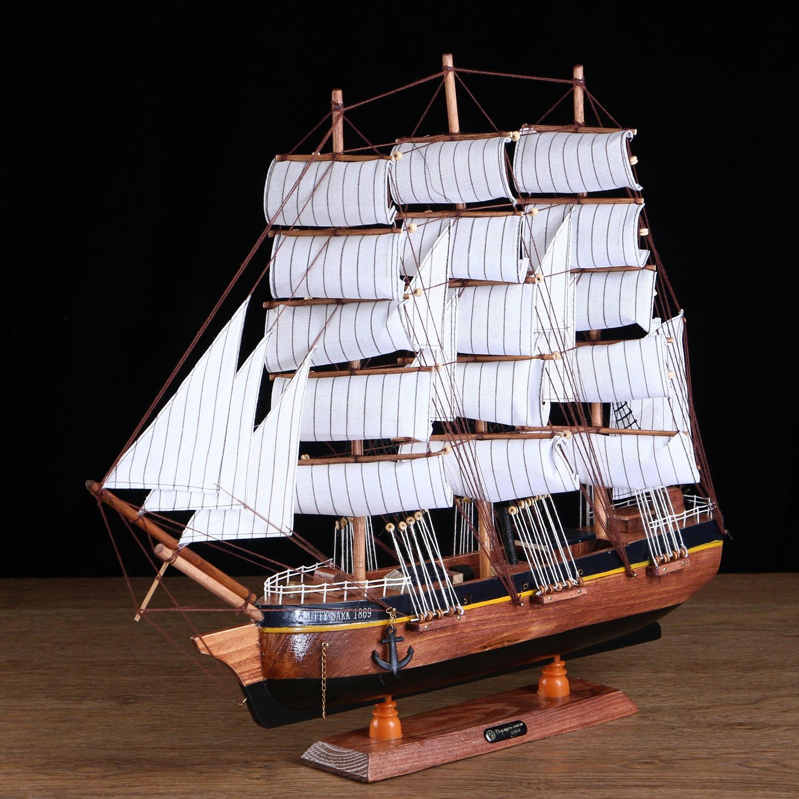 Корабль сувенирный большой «Дейчланд», борта тёмное дерево, паруса белые, 60×12×51 см