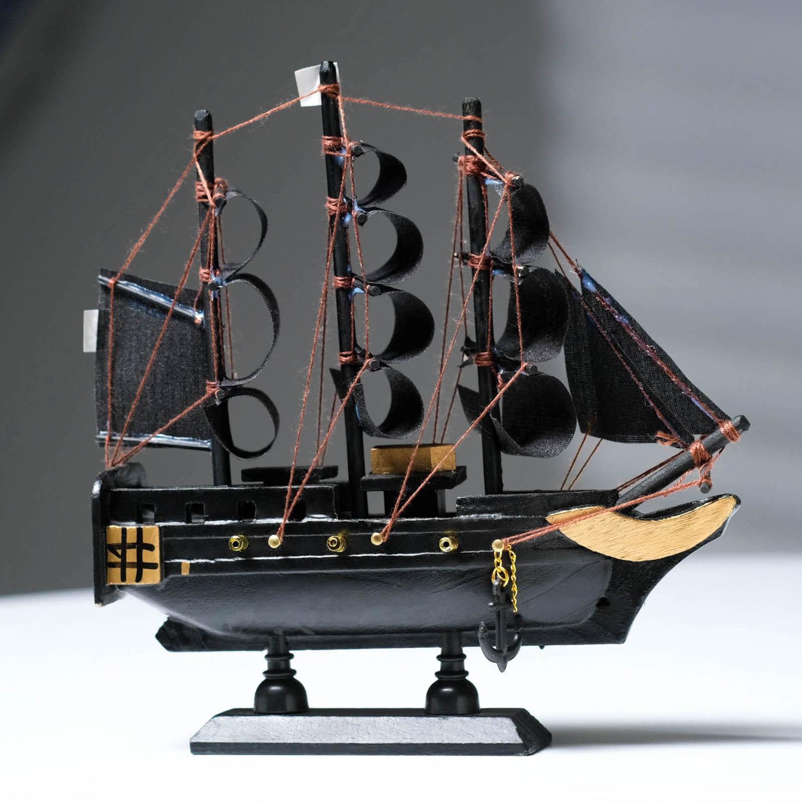 Корабль пиратский шестипушечный «Гангут», черные паруса,16х4х15.5см