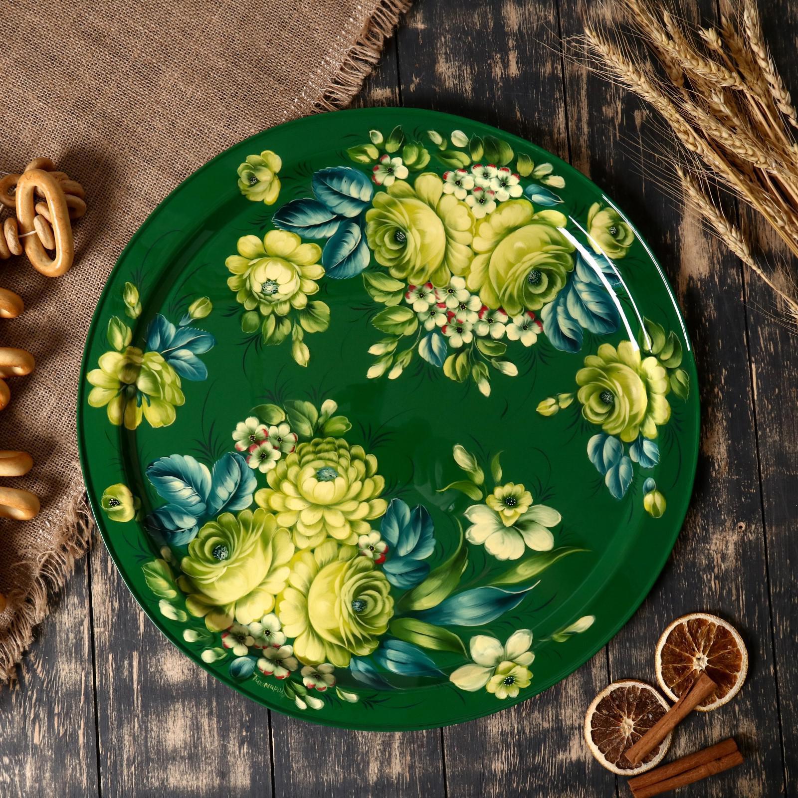 Поднос с жостовской росписью, D=44 см