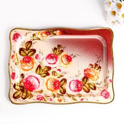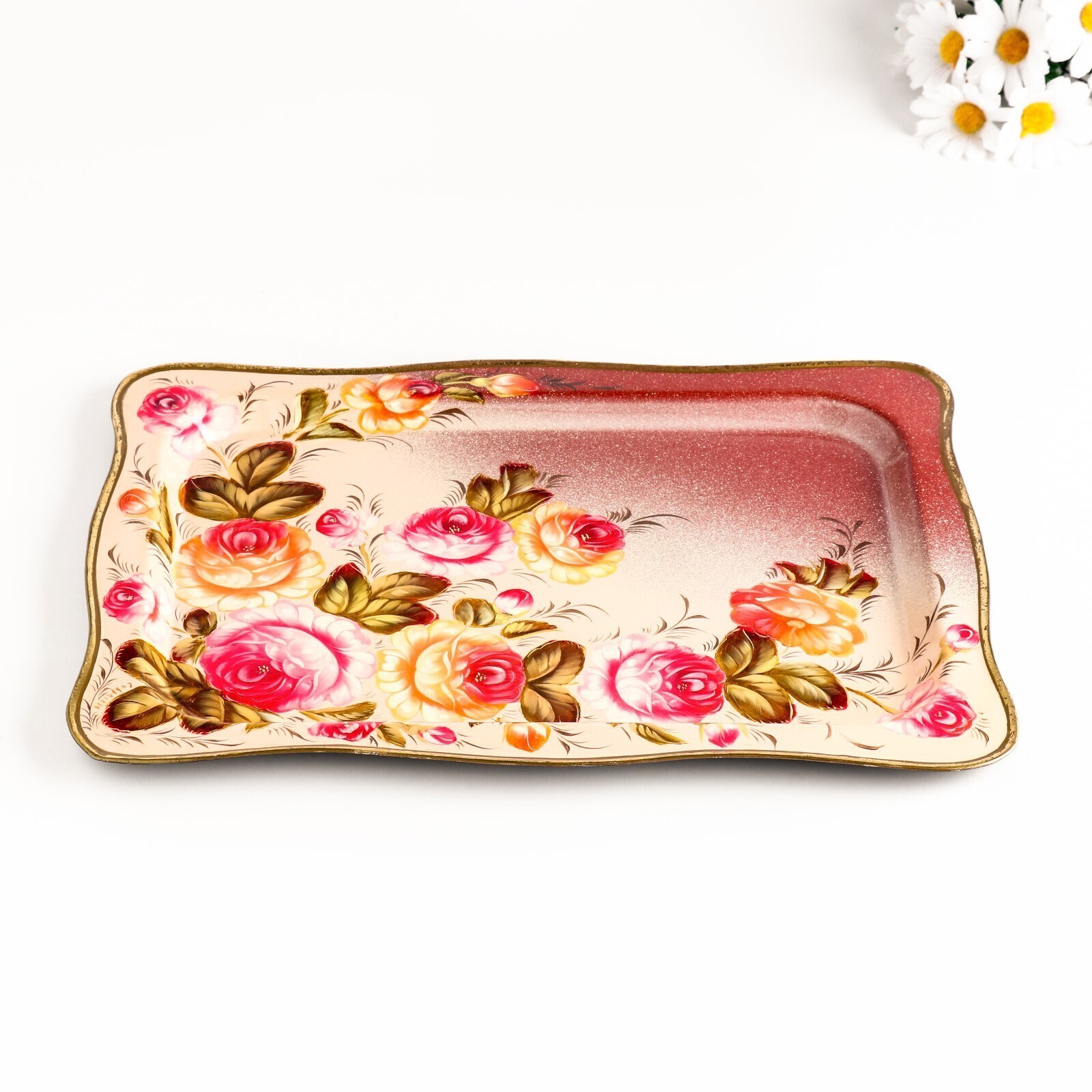 Поднос жостовский "Розы", розовый, с авторской росписью, 37х27 см