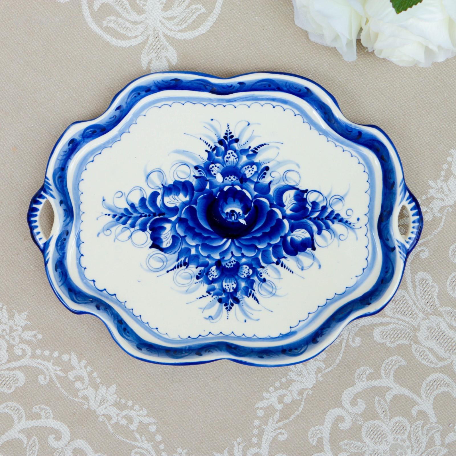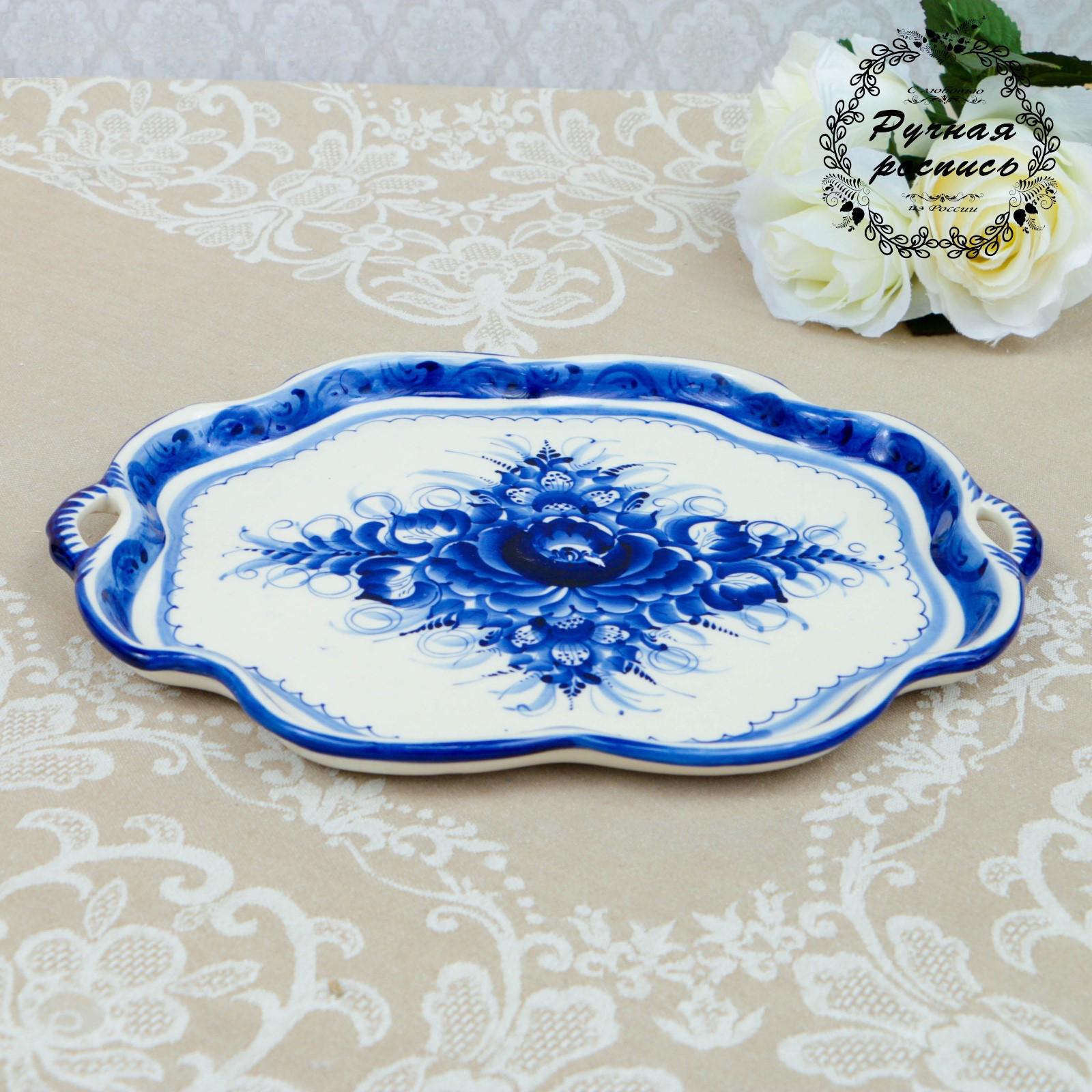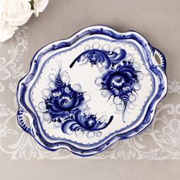 Поднос "Юлия", гжель, фарфор, 29х21 см