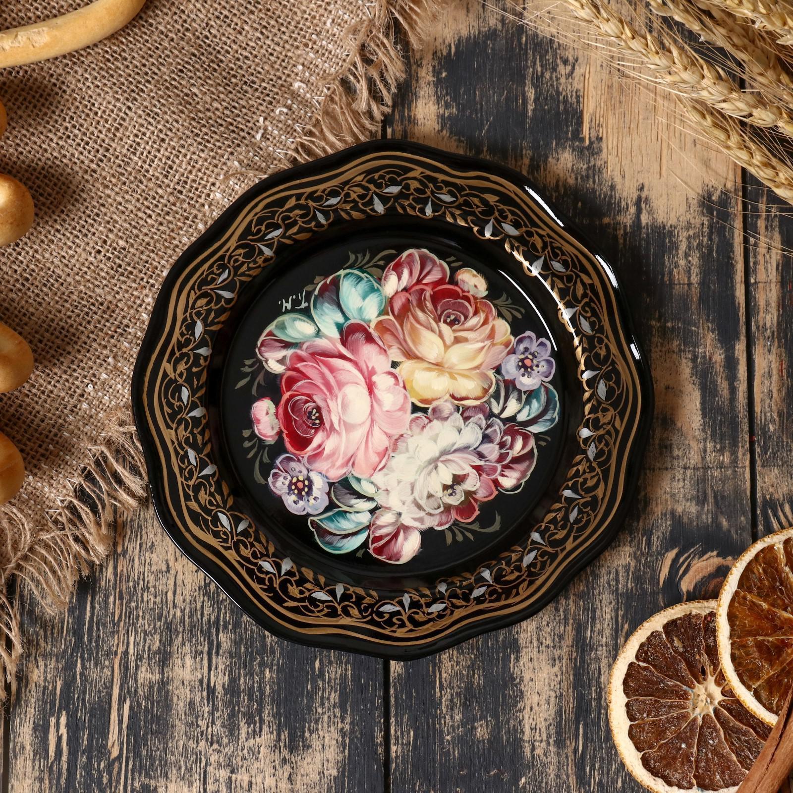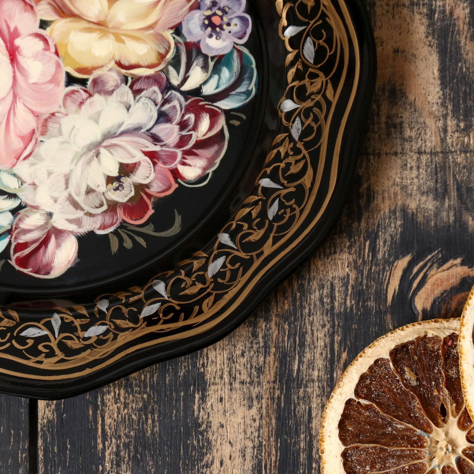 Подносы с жостовской росписью известны во всём мире. Изделия отличаются уникальными рисунками, в которых преобладают цветочные мотивы. Изображения букетов и плодов не срисовываются с натуры, они являются реализацией фантазии художника. Ловким движением кисти он наделяет каждый бутон объёмом и цветом.