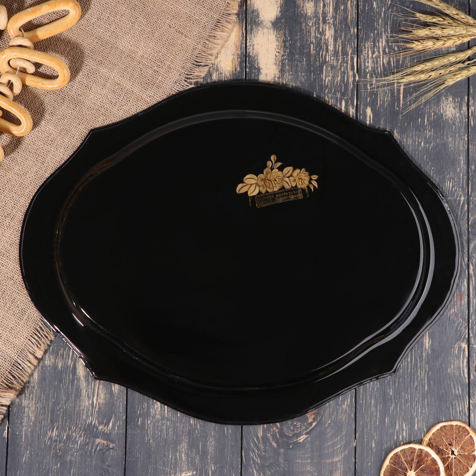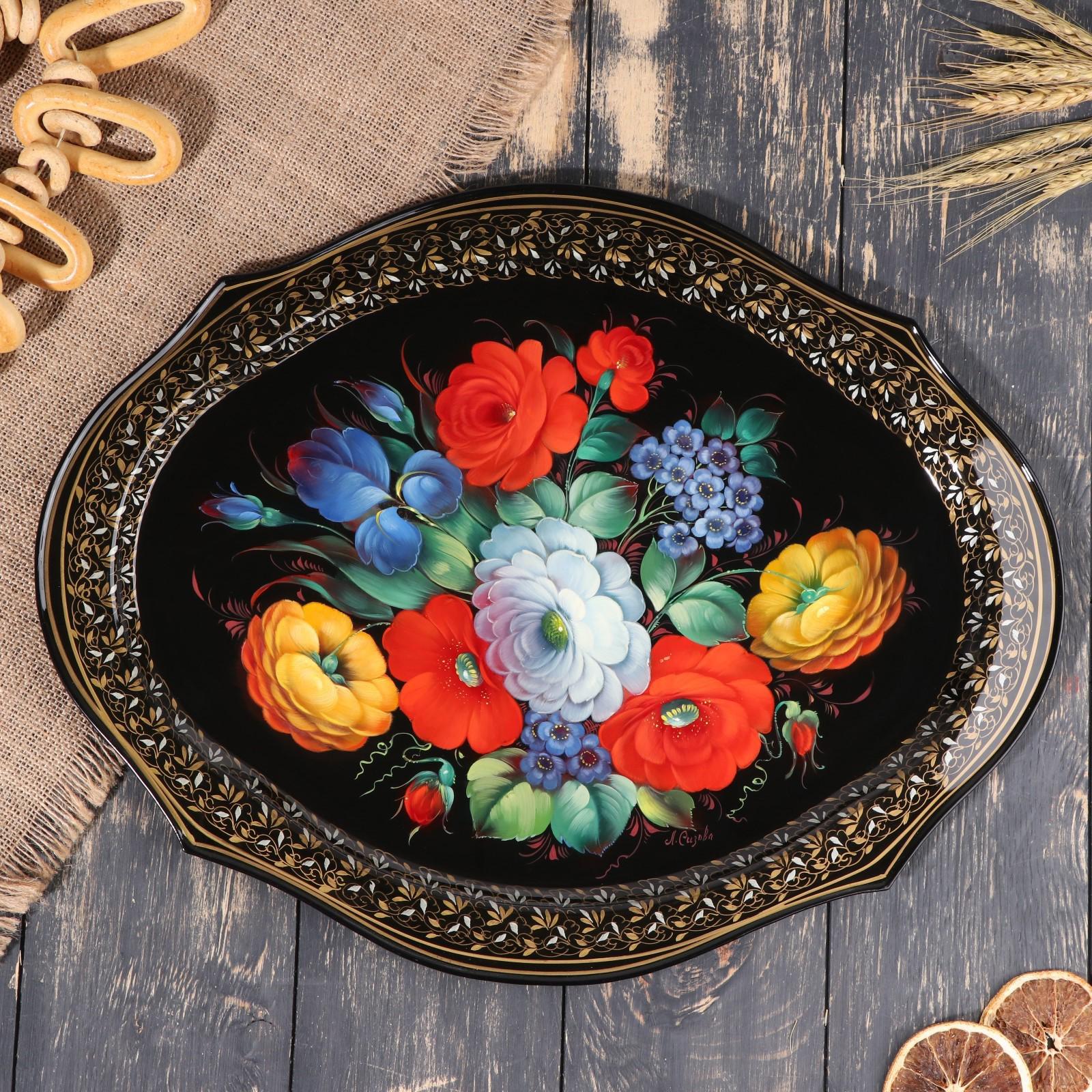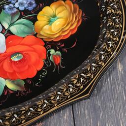 Поднос жостовский "Натюрморт", чёрный, авторская роспись, 47х37 см