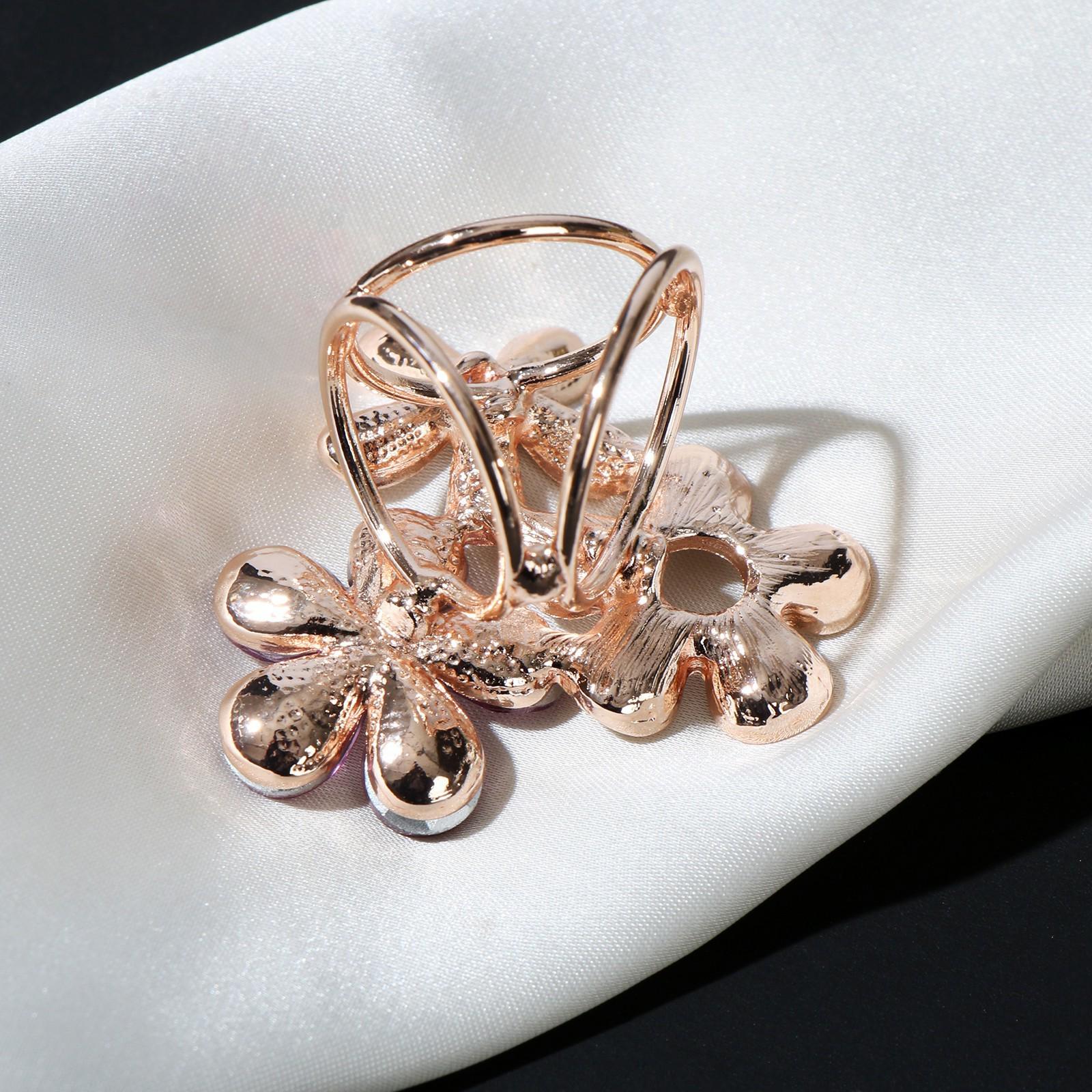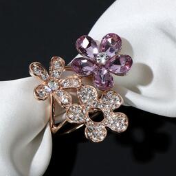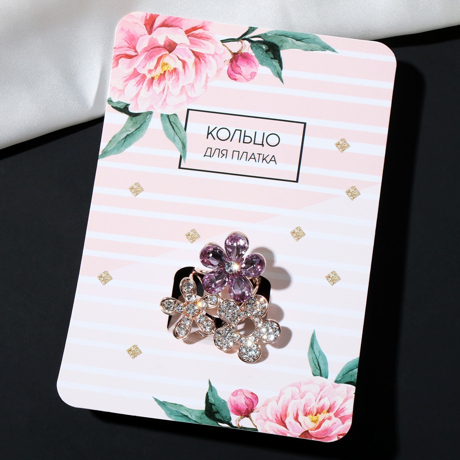 Кольцо для платка "Цветы" три, цвет бело-сиреневый в розовом золоте