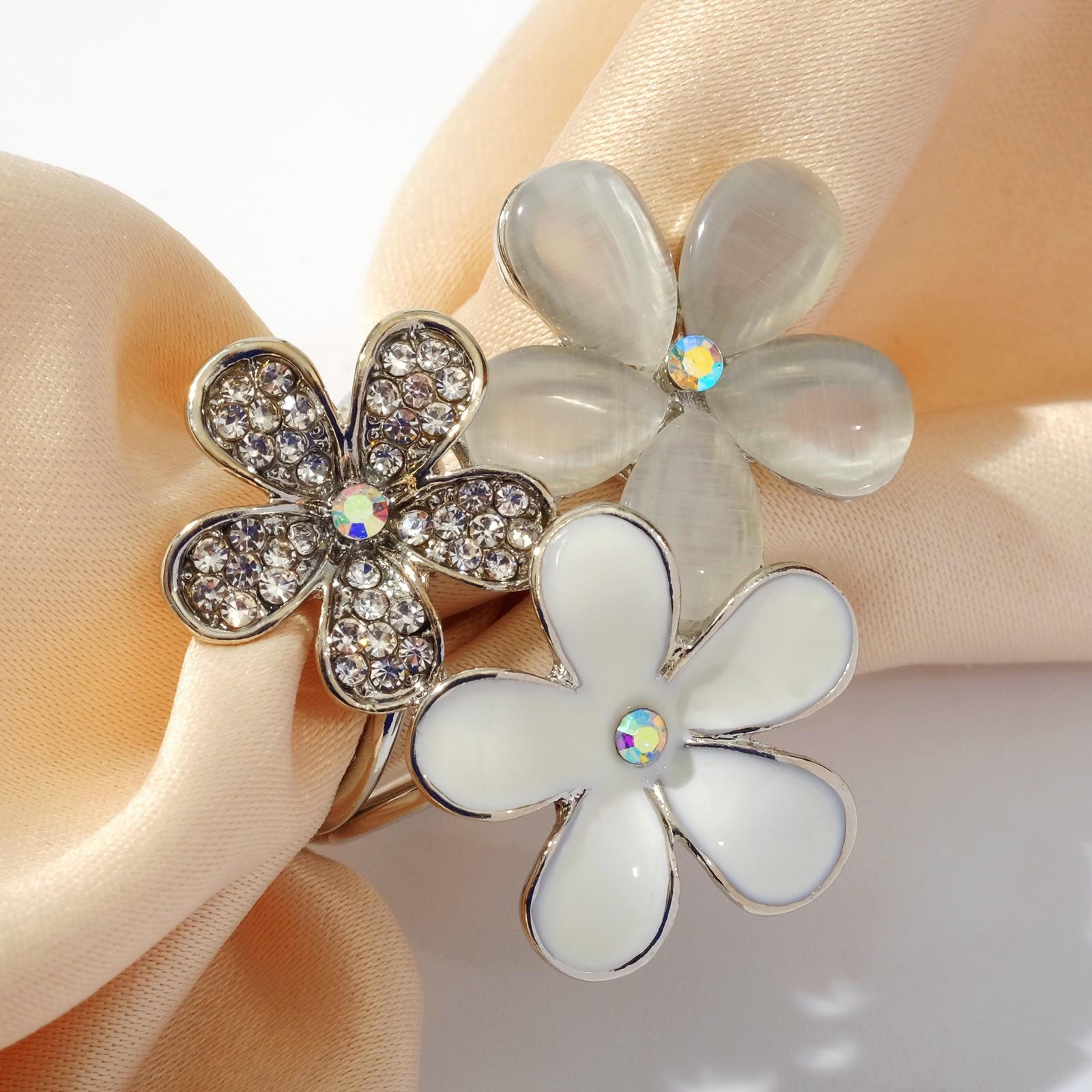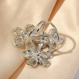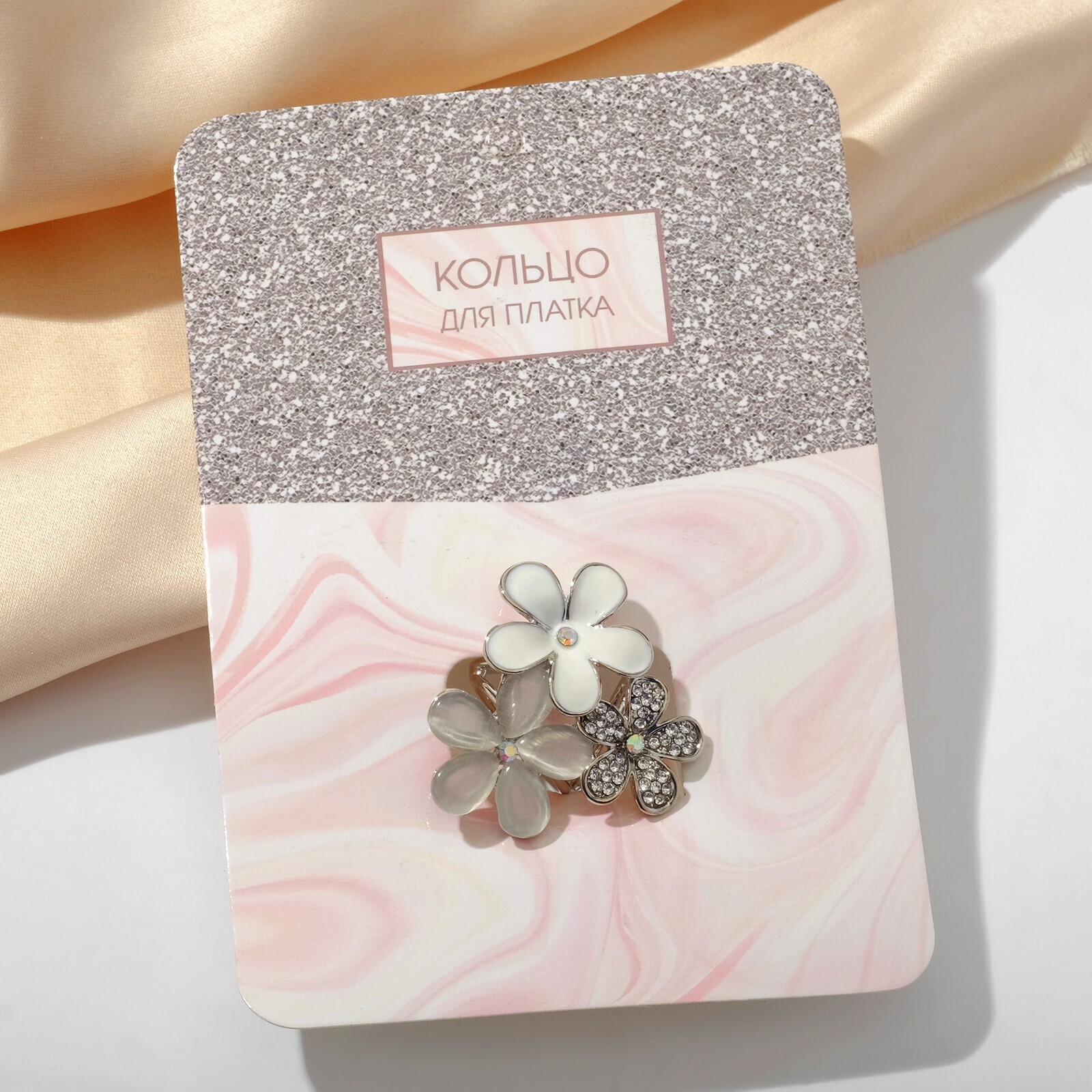Кольцо для платка "Цветочное трио", цвет бело-серый в серебре