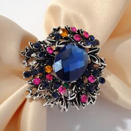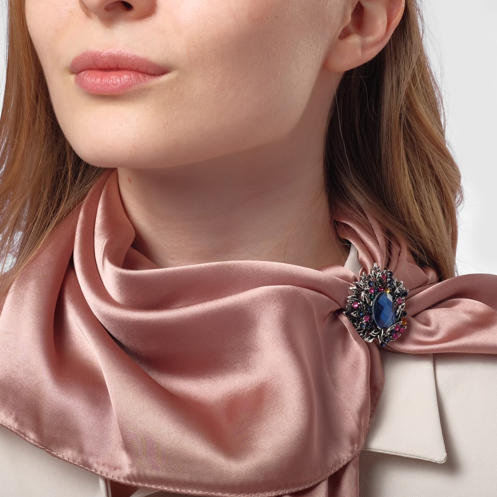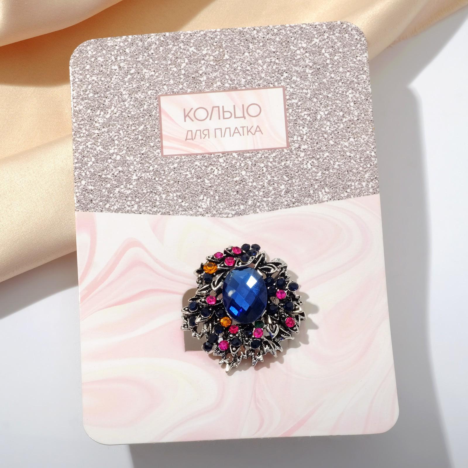Кольцо для платка "Фейерверк", цветное в чернёном серебре