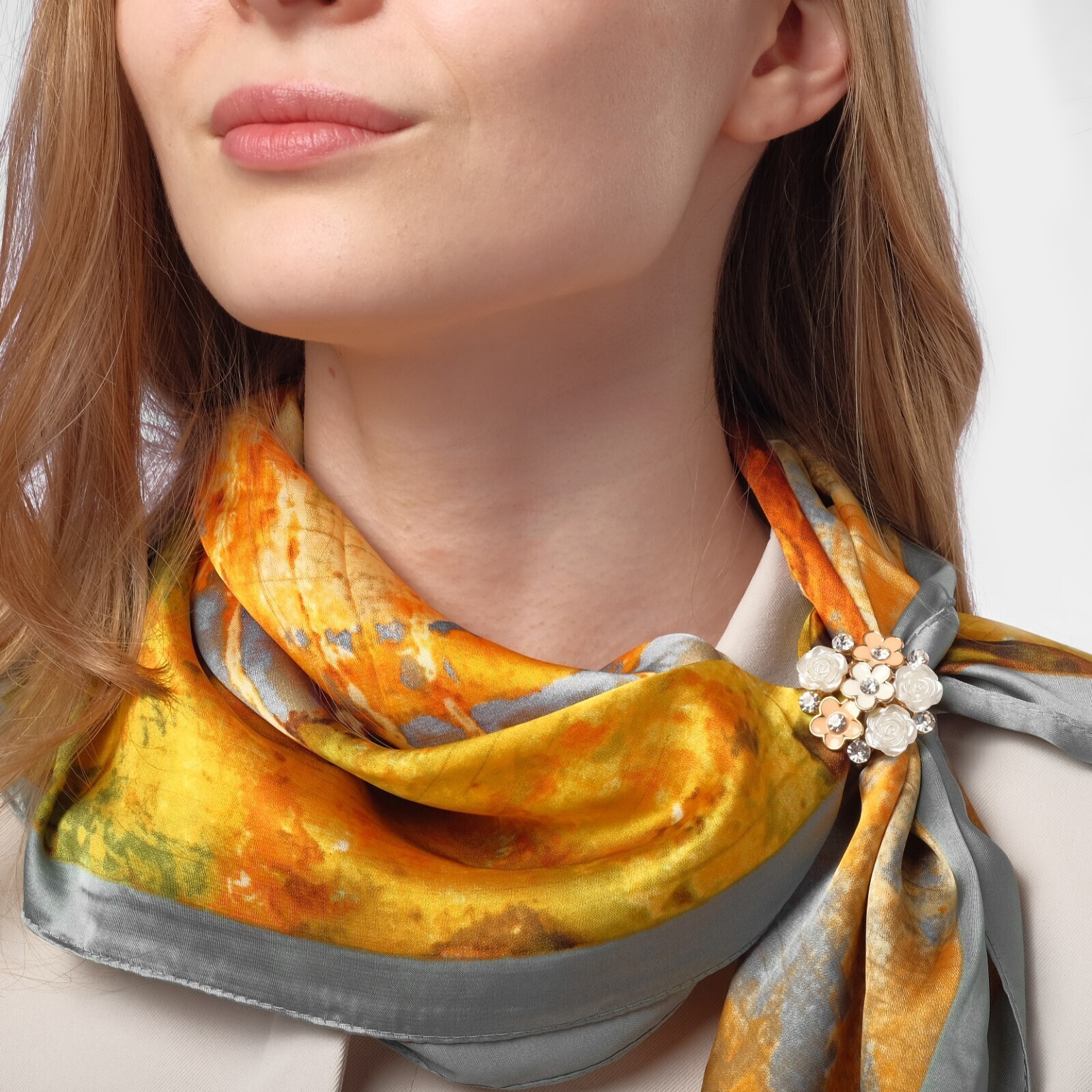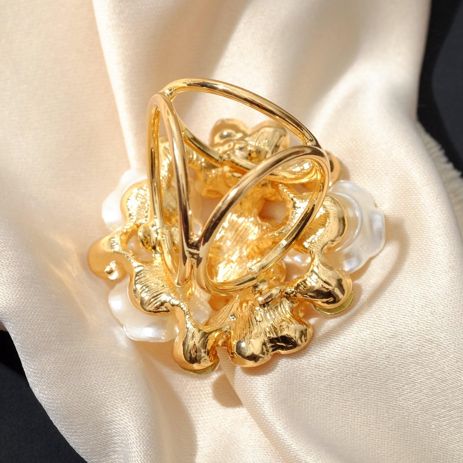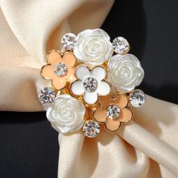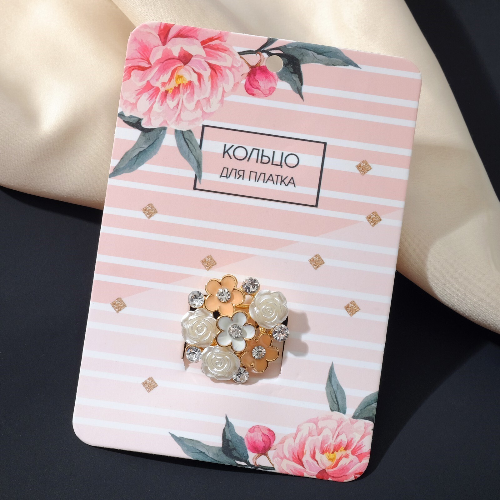 Кольцо для платка "Букет", цвет персиково-белый в золоте