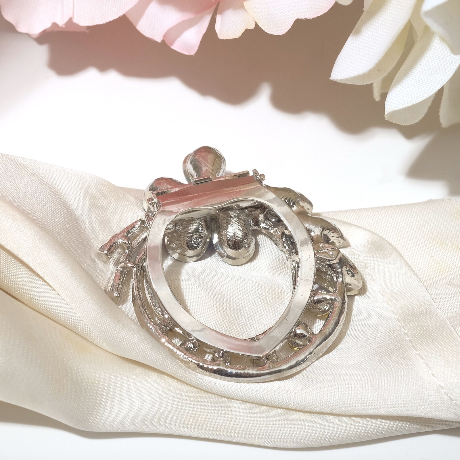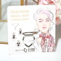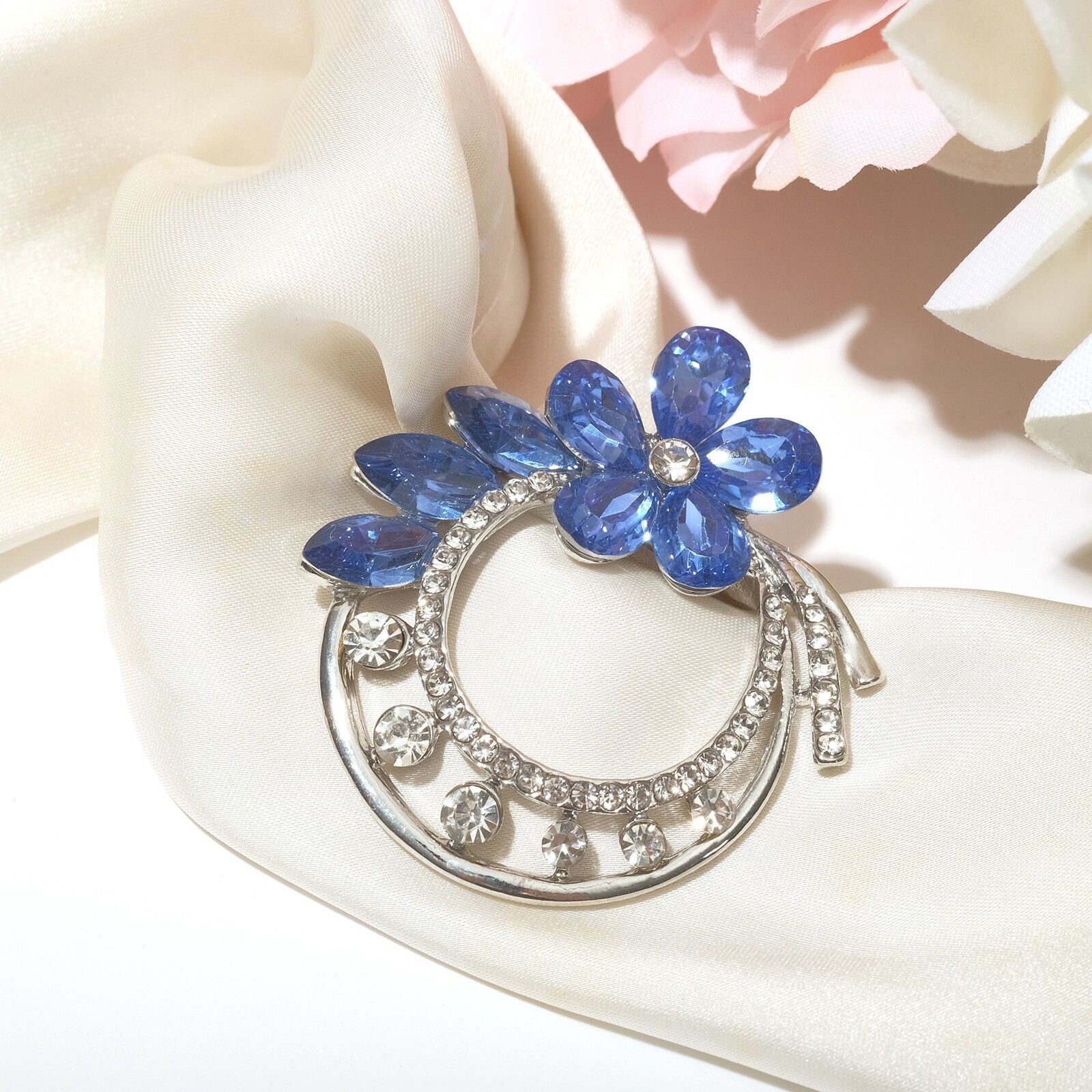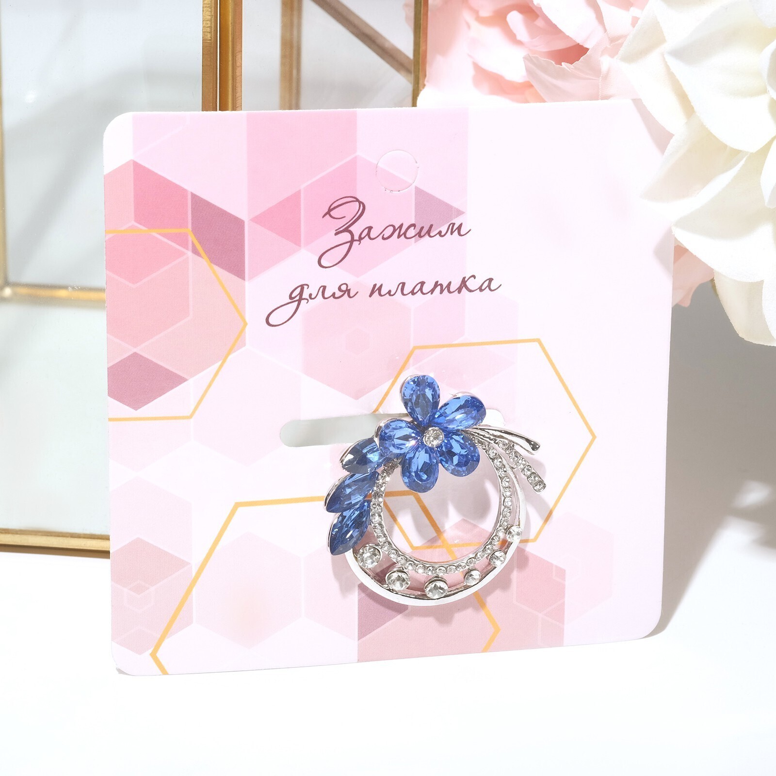 Зажим для платка "Цветок", цвет бело-синий в сером металле