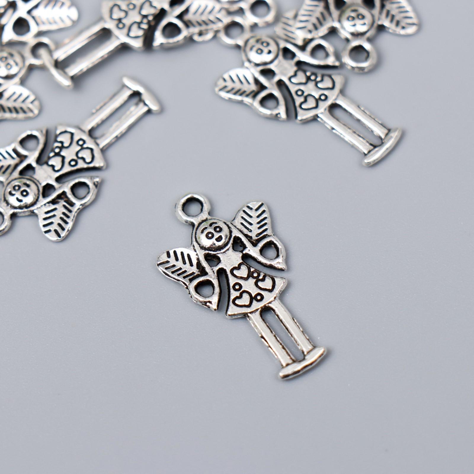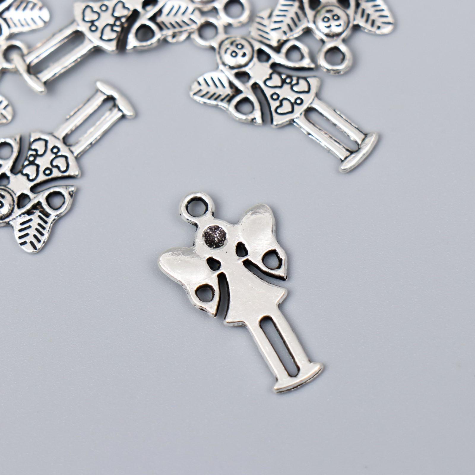 Декор для творчества металл "Девочка-фея" серебро G107B749 2,5х1,4 см