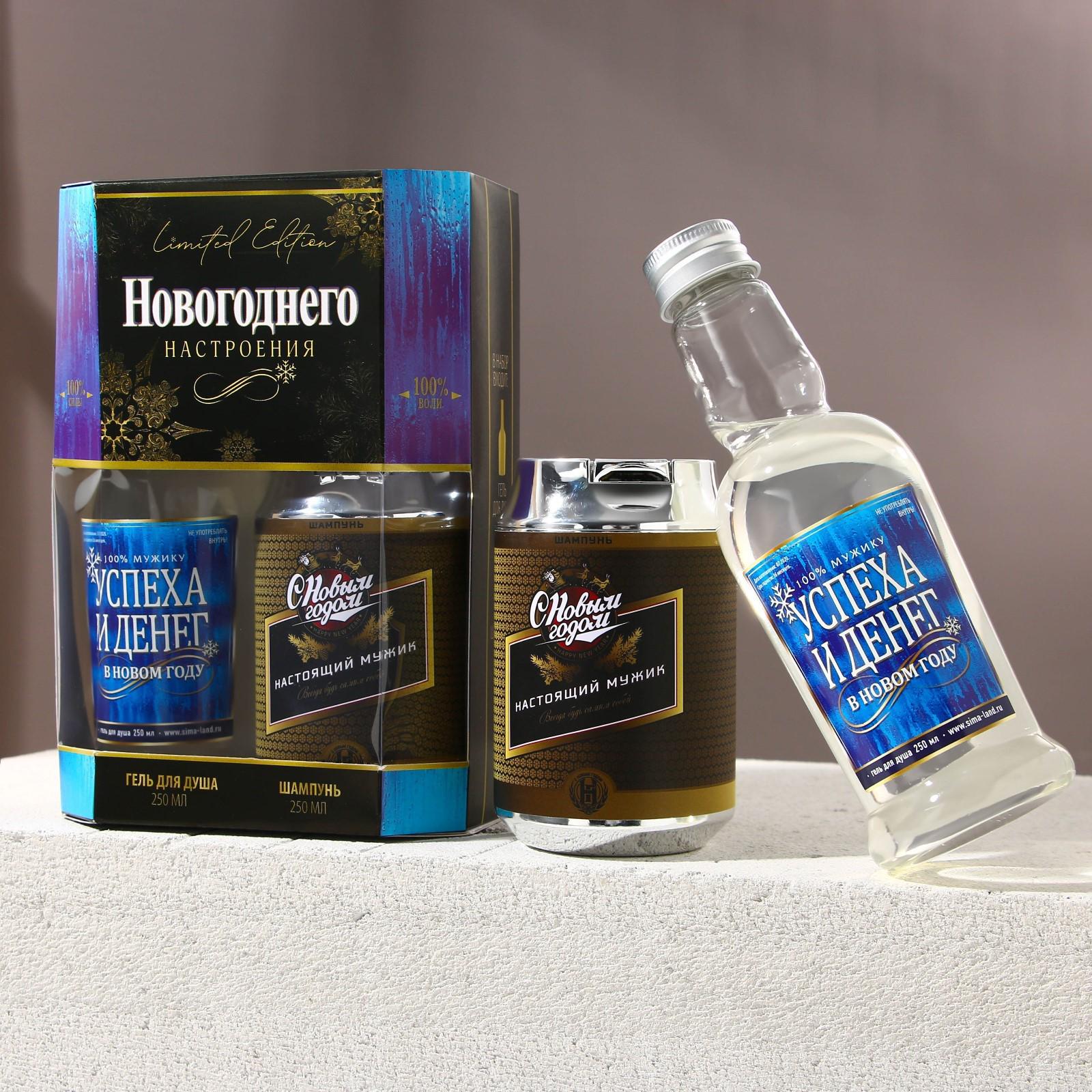 Набор "Новогоднего настроения": гель для душа во флаконе водки, шампунь во флаконе пиво