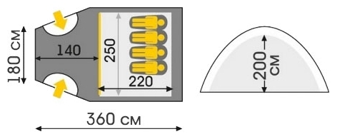 - Длина 360 см