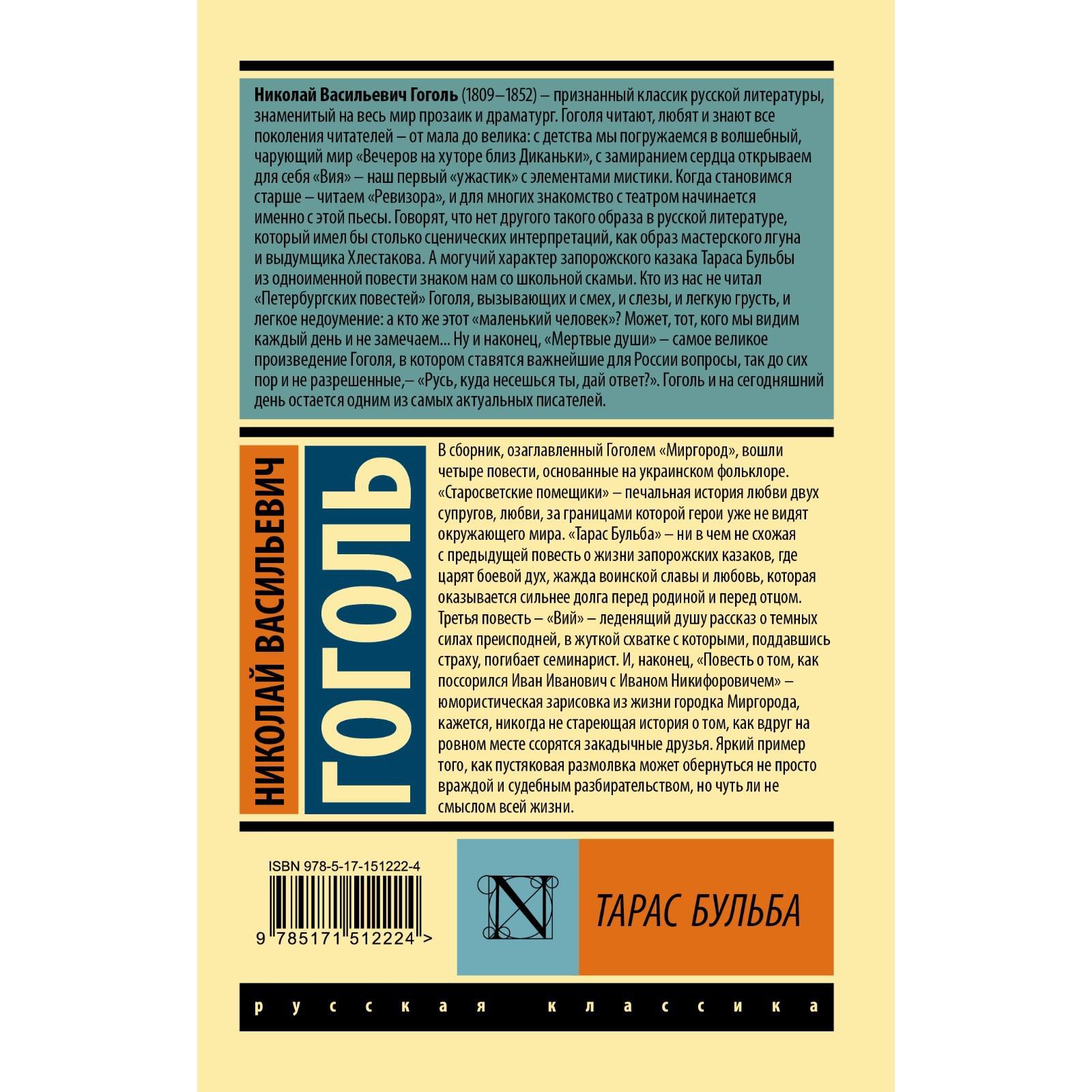 В сборник, озаглавленный Гоголем «Миргород», вошли четыре повести, основанные на украинском фольклоре. «Старосветские помещики» – печальная история любви двух супругов, любви, за границами которой герои уже не видят окружающего мира. «Тарас Бульба» – ни в чем не схожая с предыдущей повесть о жизни запорожских казаков, где царят боевой дух, жажда воинской славы и любовь, которая оказывается сильнее долга перед родиной и перед отцом. Третья повесть – «Вий» – леденящий душу рассказ о темных силах преисподней, в жуткой схватке с которыми, поддавшись страху, погибает семинарист. И, наконец, «Повесть о том, как поссорился Иван Иванович с Иваном Никифоровичем» – юмористическая зарисовка из жизни городка Миргорода, кажется, никогда не стареющая история о том, как вдруг на ровном месте ссорятся закадычные друзья. Яркий пример того, как пустяковая размолвка может обернуться не просто враждой и судебным разбирательством, но чуть ли не смыслом всей жизни.
