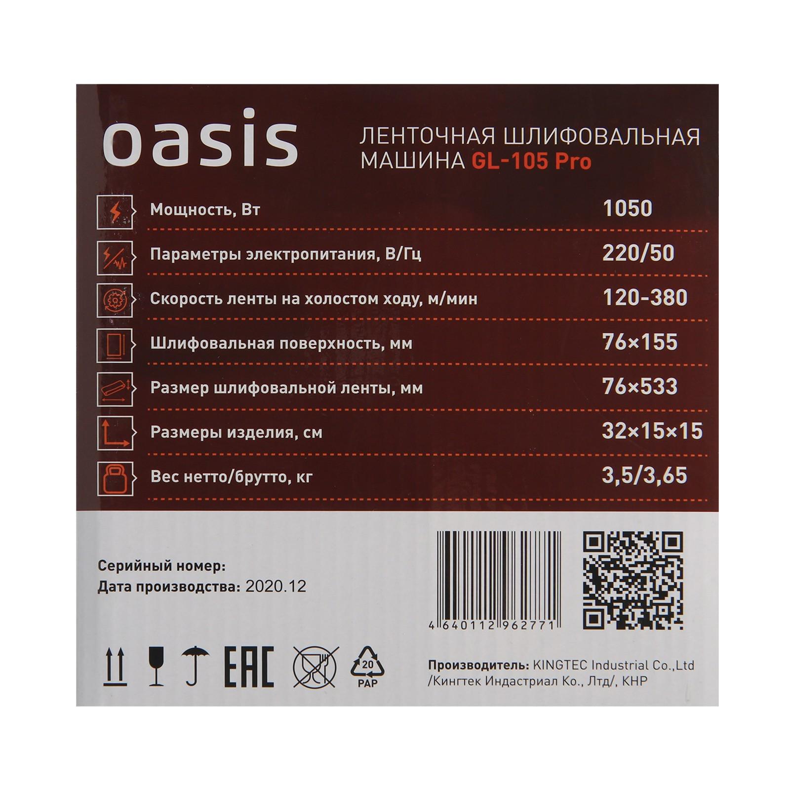 Шлифмашина ленточная Oasis GL-105 PRO, 1050 Вт, 120-380 м/мин, поверхность 76х155 мм
