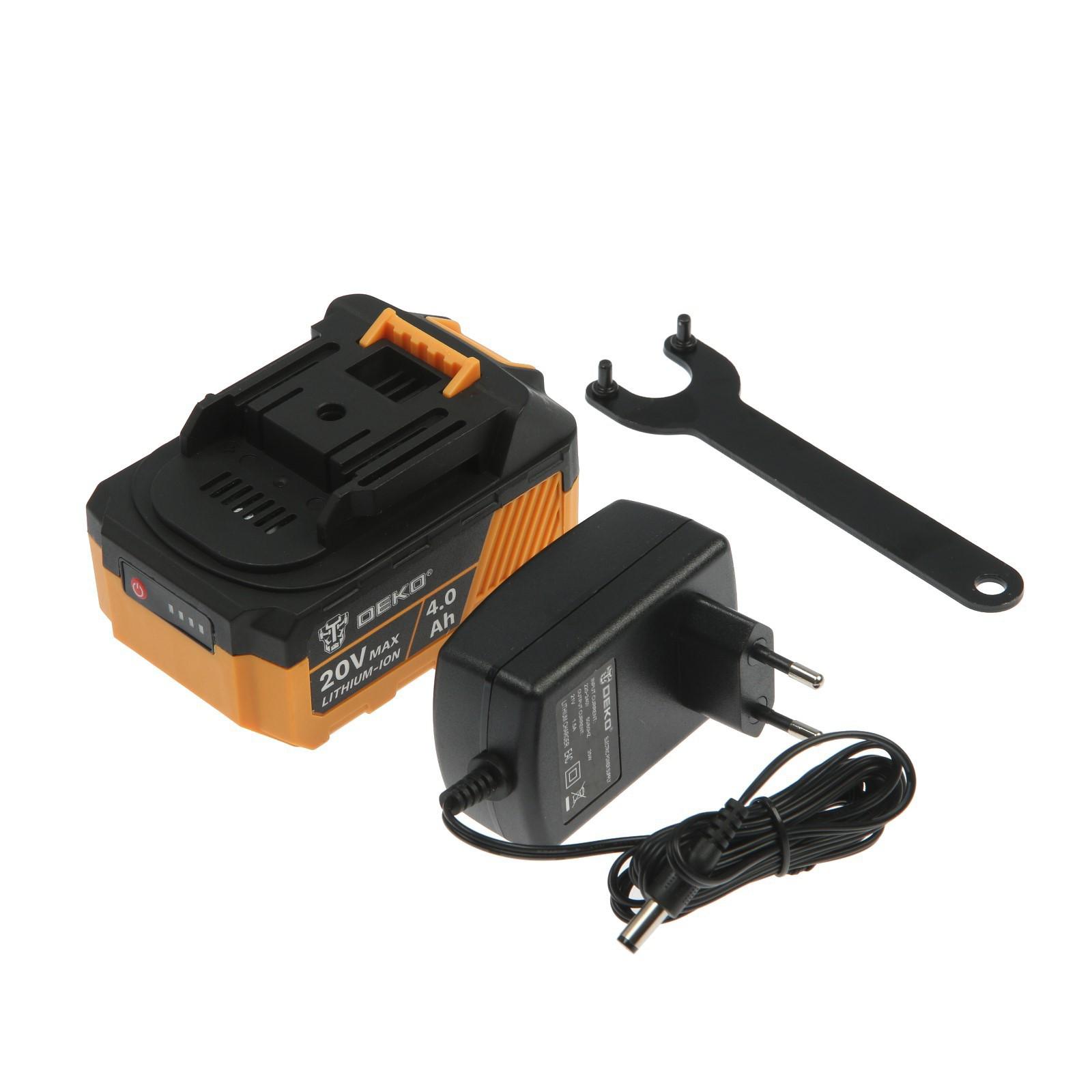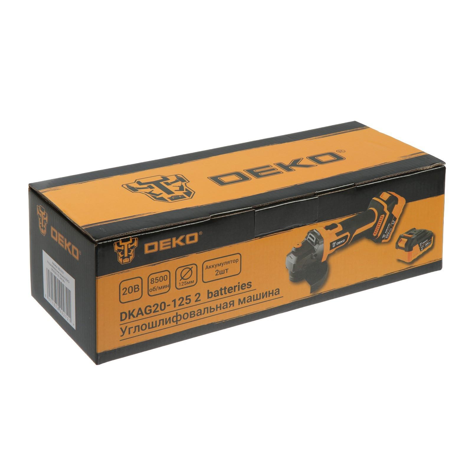Аккумуляторная угловая шлифмашина DEKO DKAG20-125, 20 В, 2х4 Ач, Li-Ion, d=125х22.2 мм