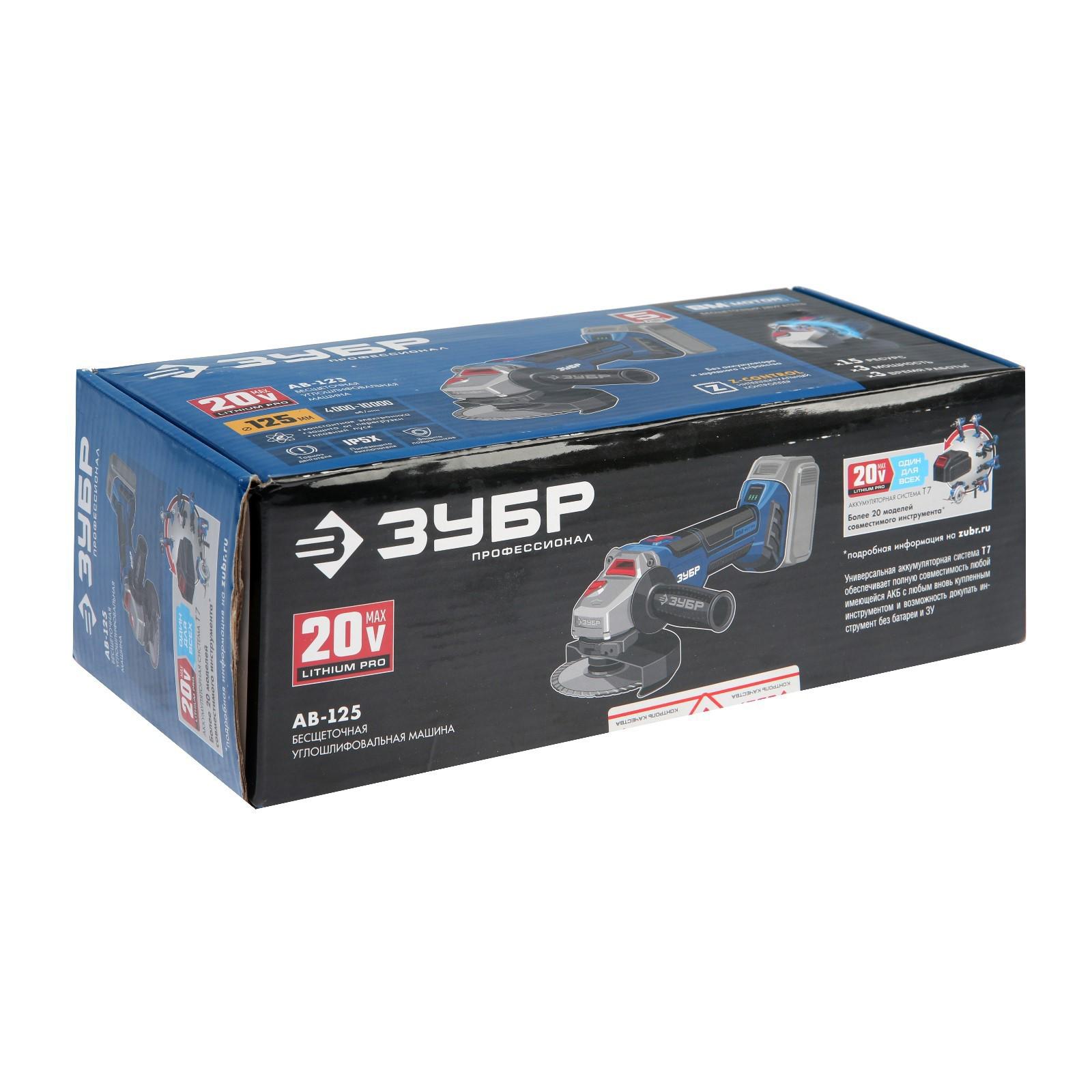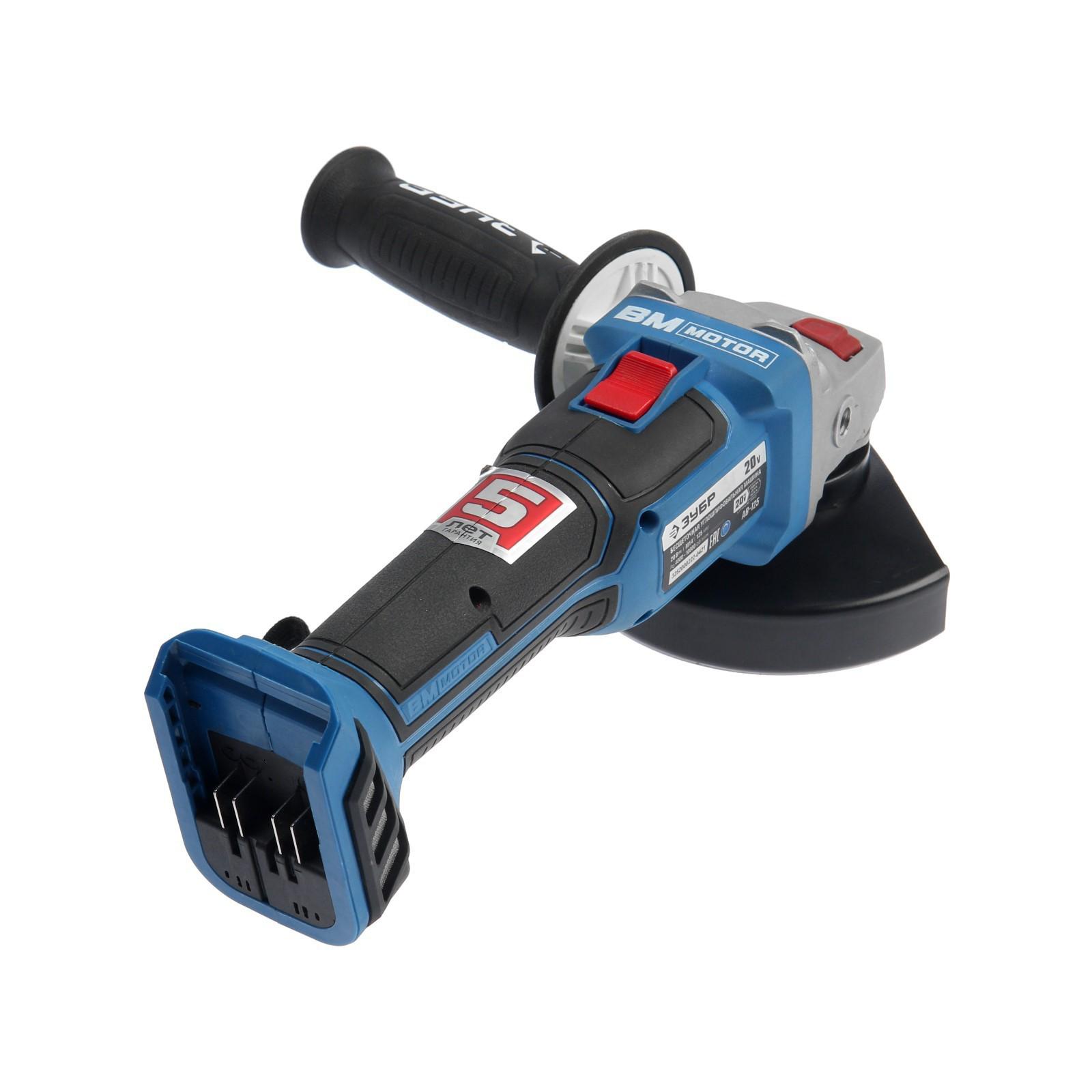 Угловая шлифмашина ЗУБР AB-125, аккумуляторная, 20 В, 10000 об/мин, 125х22.2 мм БЕЗ АКБ И ЗУ