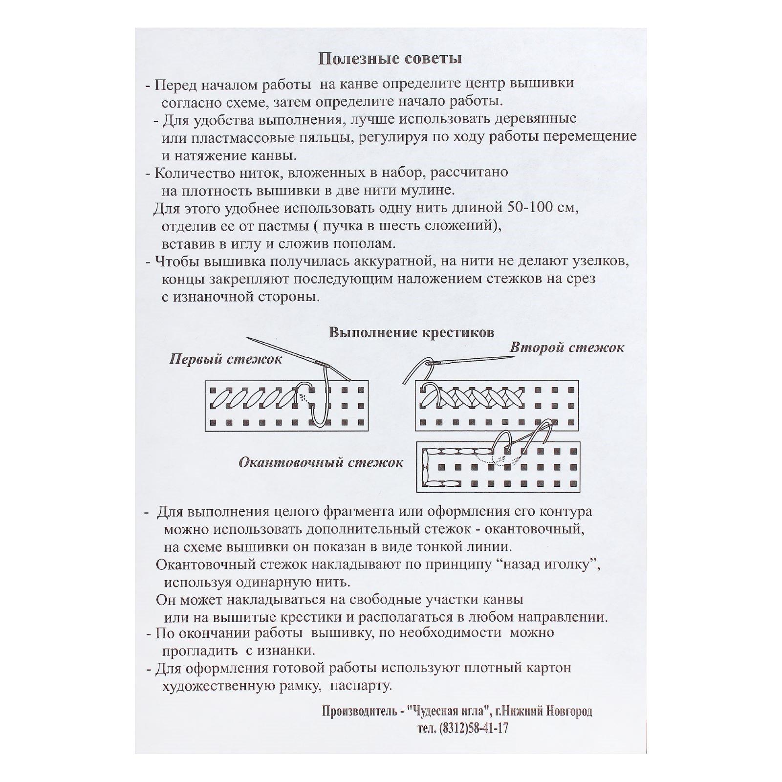 • Комплектация Игла, Инструкция, Канва, Мулине, Схема