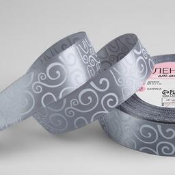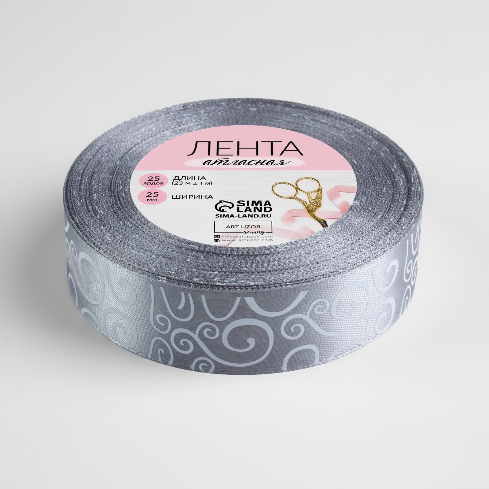 Лента атласная «Узоры», 25 мм × 23 ± 1 м, цвет тёмно-серый №059